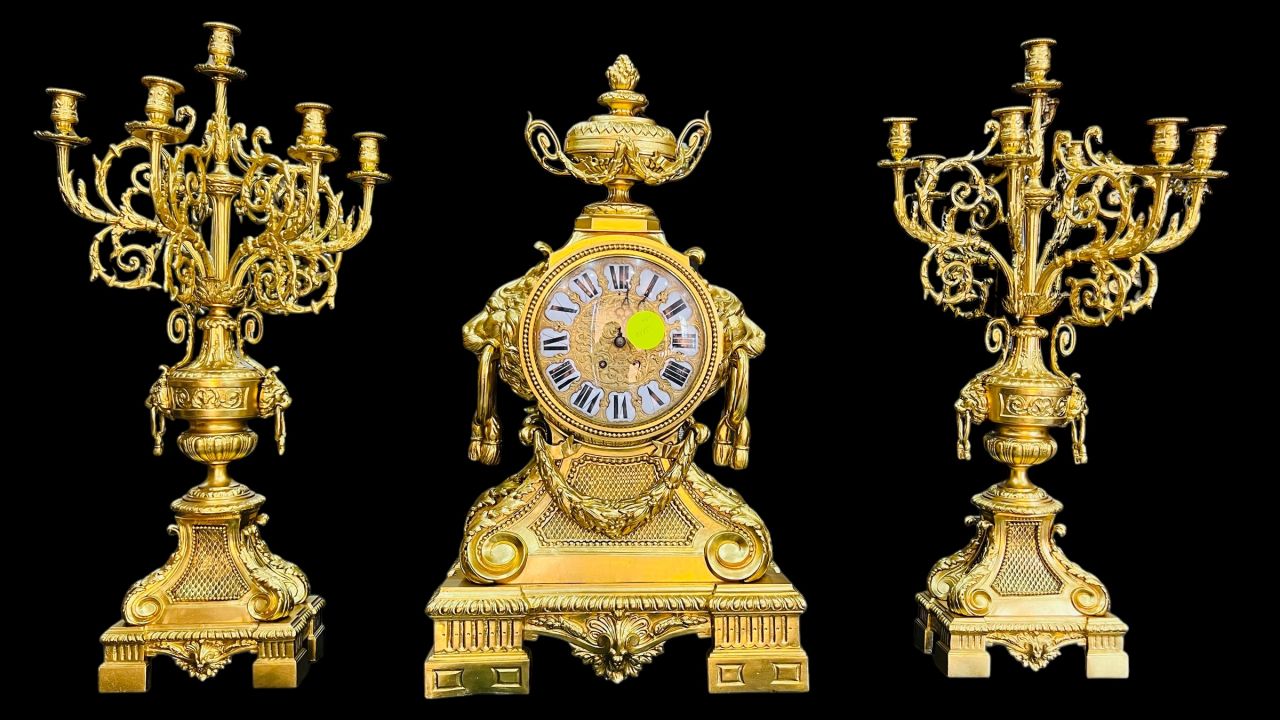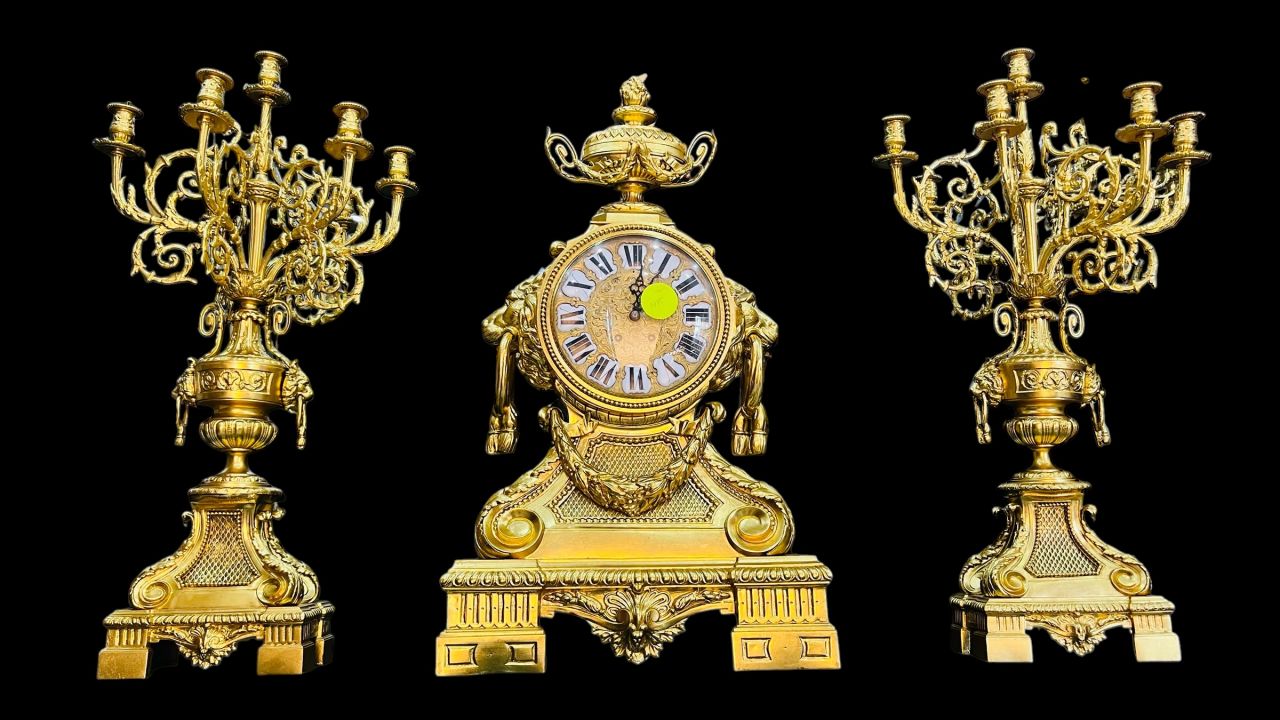 Bộ đh sét 3 Pháp cổ đồng đúc mạ vàng trên 100 năm, đã spa lại cực nặng đh 2 người khiêng không nỗi , bày phòng khách hay biệt thự thì đẹp miễn bàn rất đáng được sưu tầm