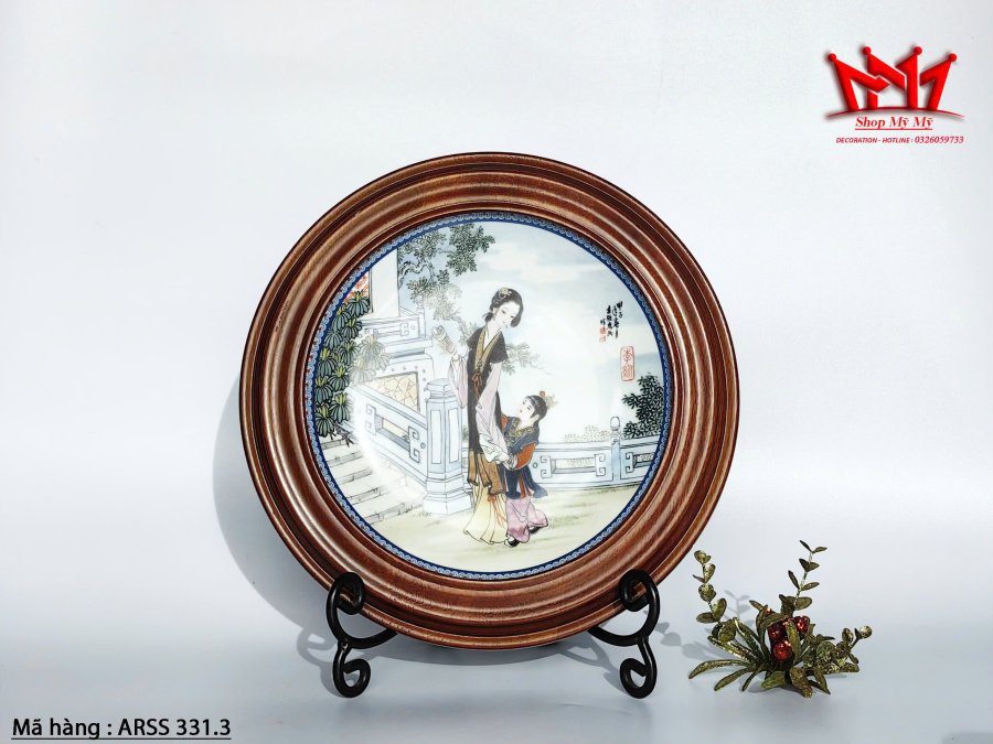 Bộ dĩa sứ có khung gỗ dùng để trang trí treo tường.