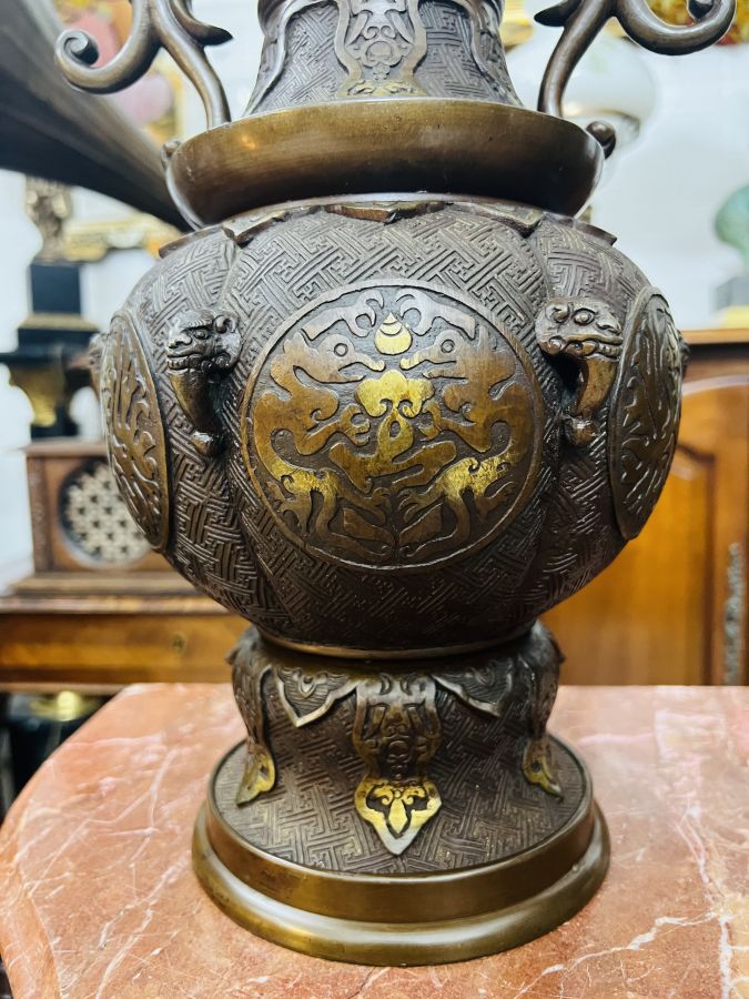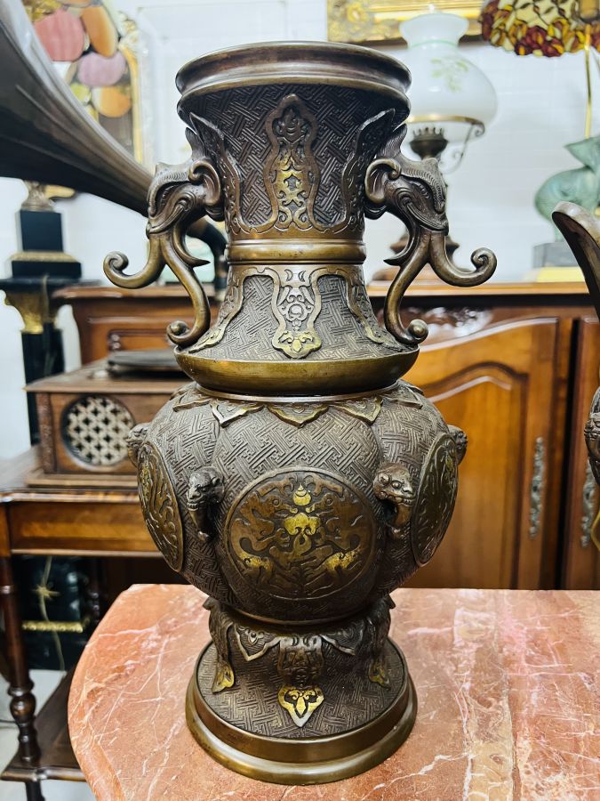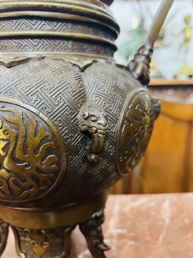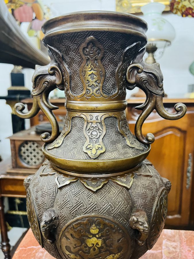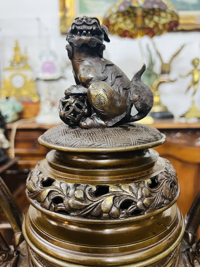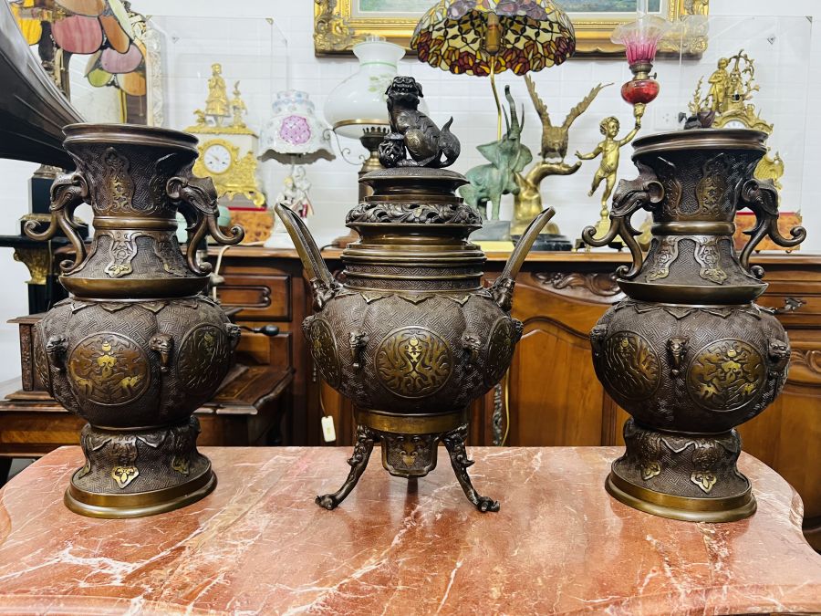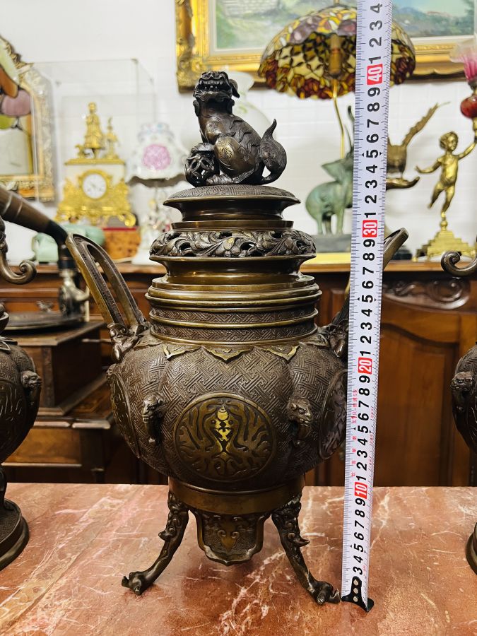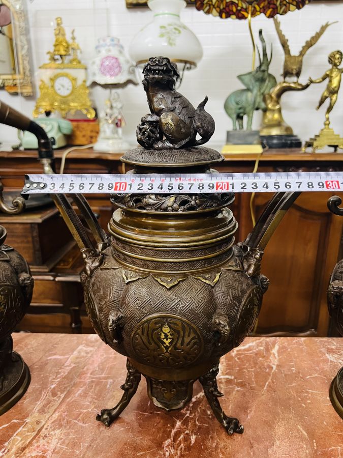 Bộ set 3 đỉnh đồng đúc rất đáng để sưu tầmHàng cũ xuất Châu Âu, đúc tinh xảoĐỉnh cao : 42cm,bình 36cm