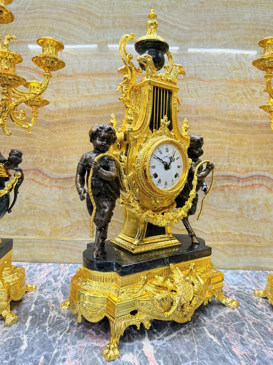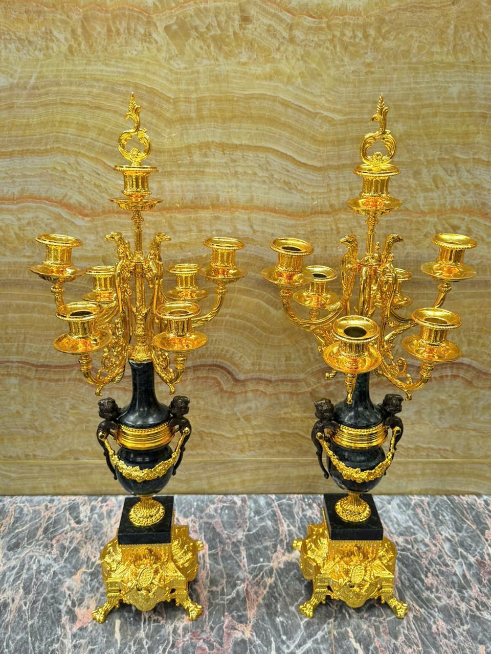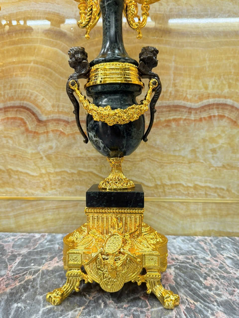 •-Bộ Đồng Hồ & Chân Nến Imperial đá Cẩm thạch xanh - made in ITALY