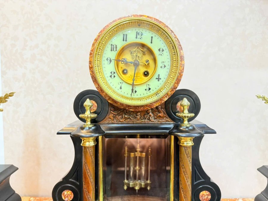 Bộ đồng hồ đá Cẩm thạch Japy Pháp cổ Sản xuất năm 1855