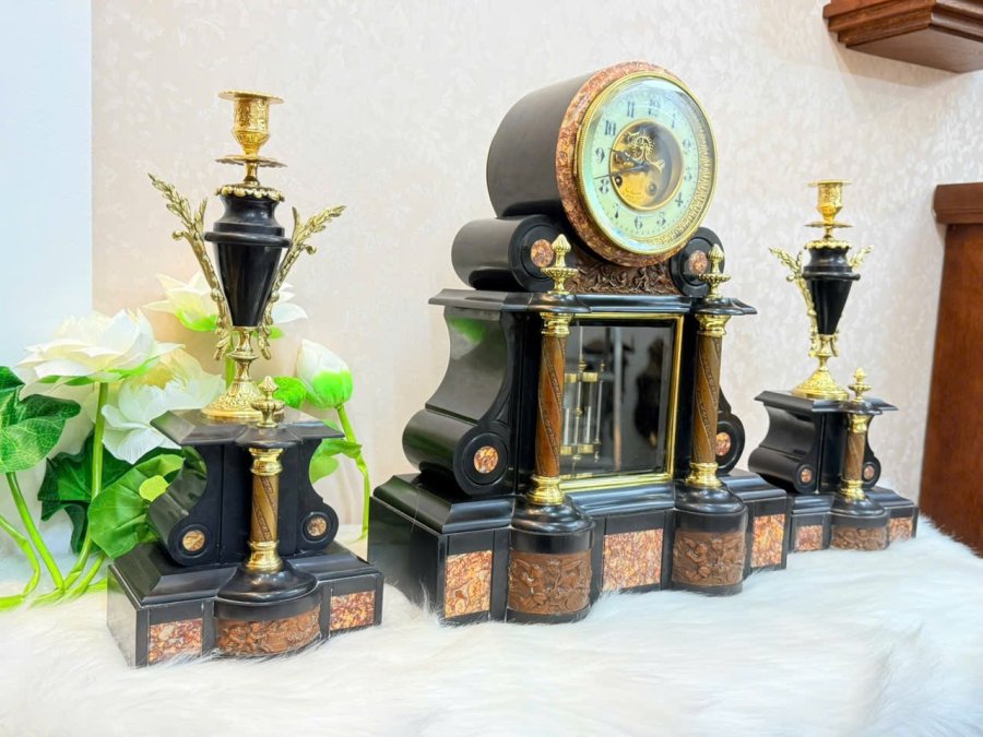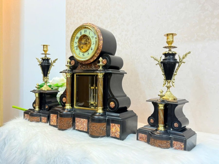 Bộ đồng hồ đá Cẩm thạch Japy Pháp cổ