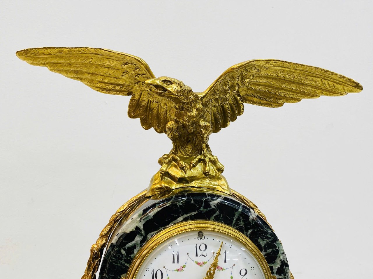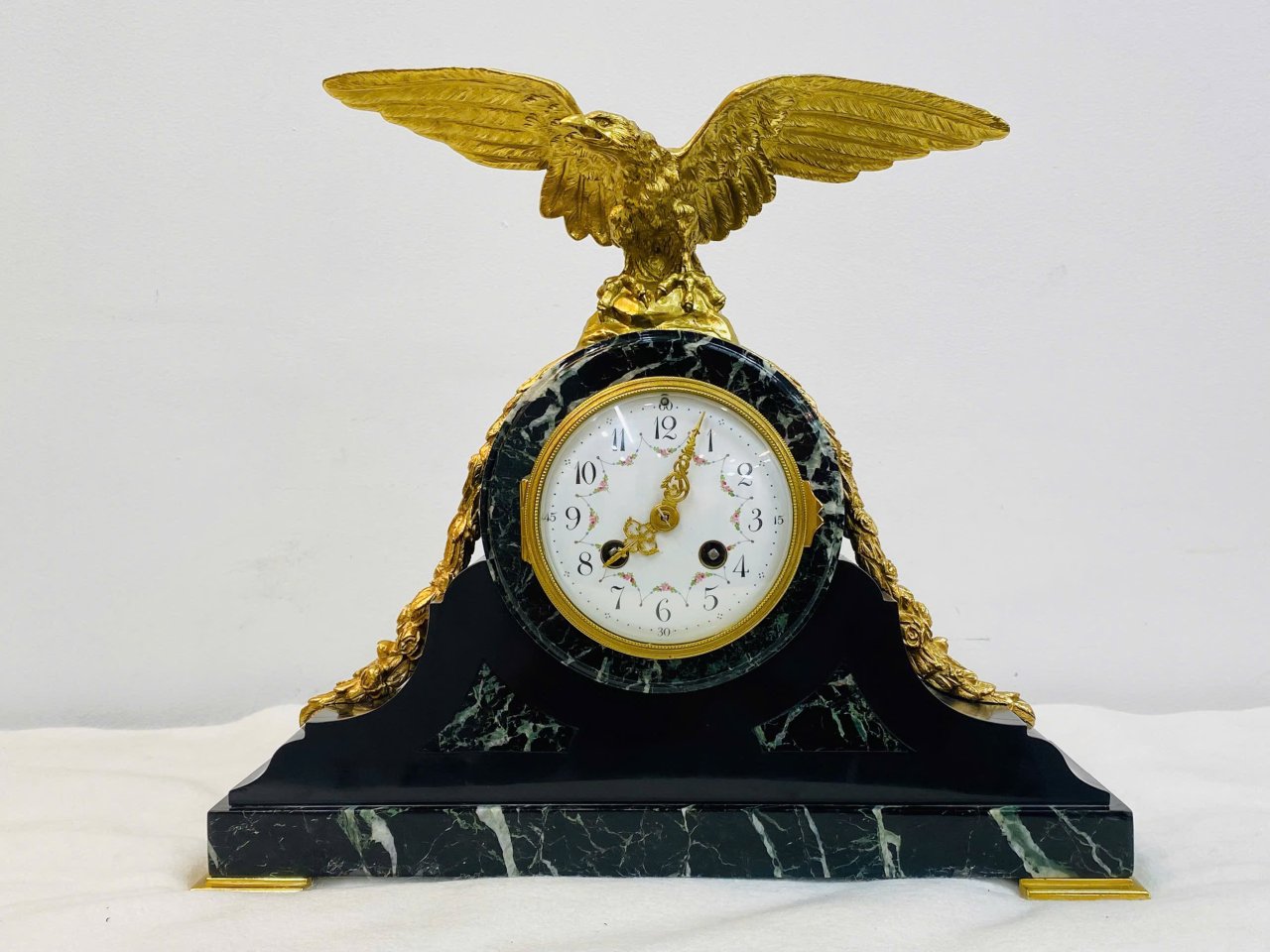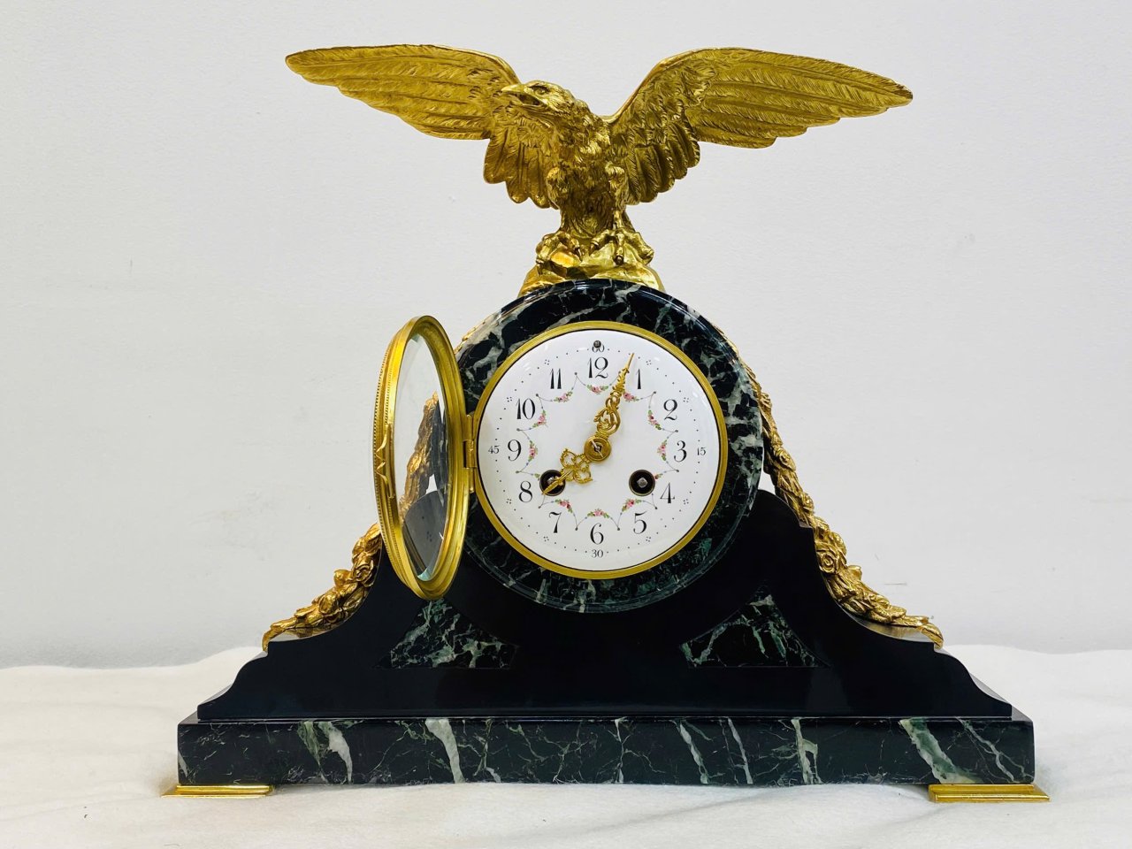 - Chất liệu : Đá phối đồng , phía trên của chiếc đồng hồ là bức tượng đại bàng bằng đồng được đúc cực dày và sắc nét thể hiện sự quyền uy và sang trọng.