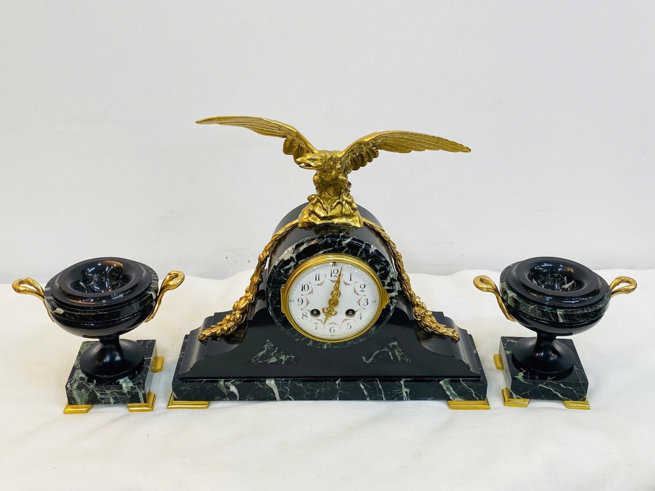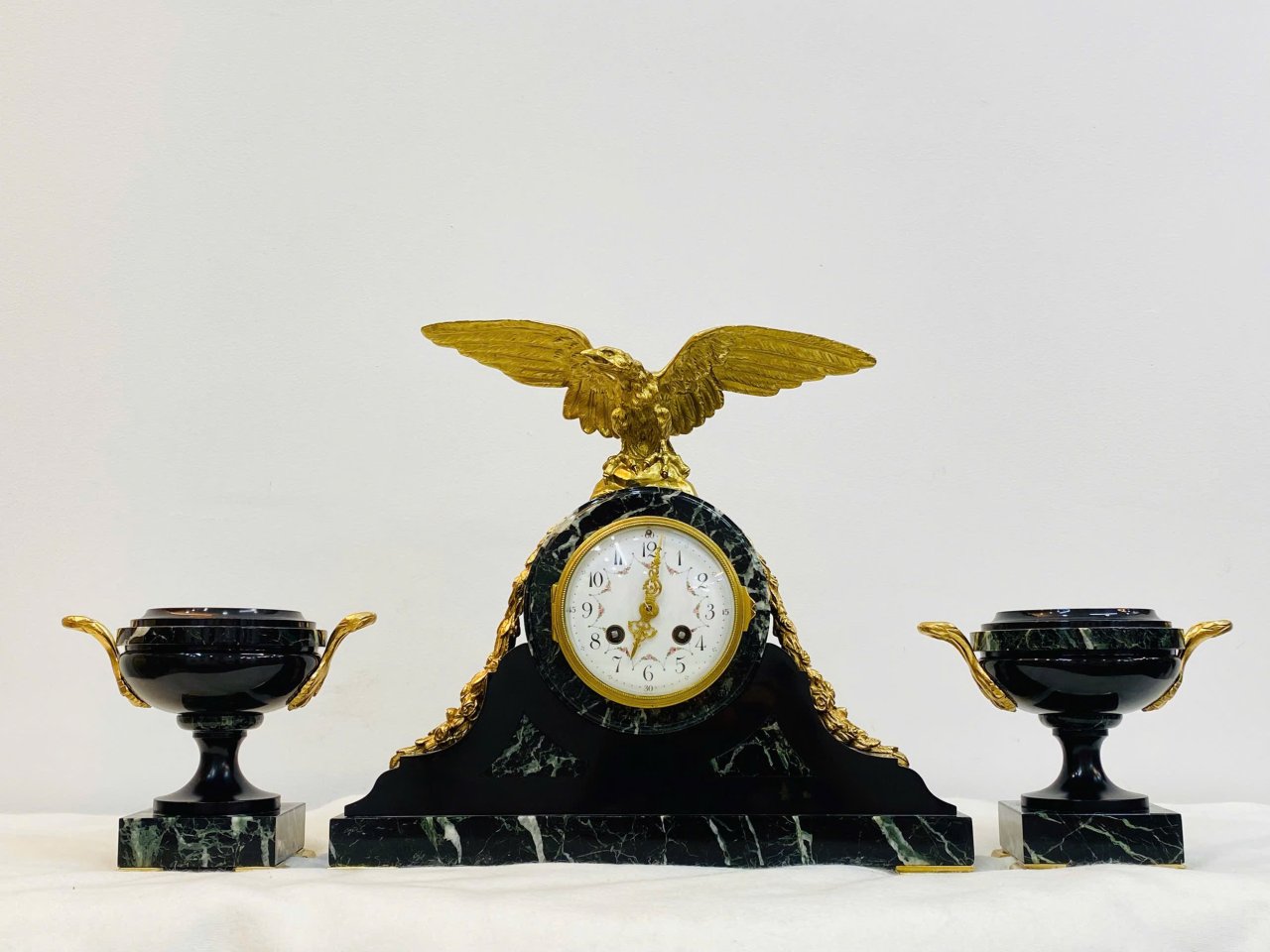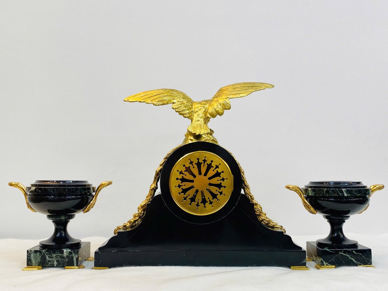 - Chất liệu : Đá phối đồng , phía trên của chiếc đồng hồ là bức tượng đại bàng bằng đồng được đúc cực dày và sắc nét thể hiện sự quyền uy và sang trọng.