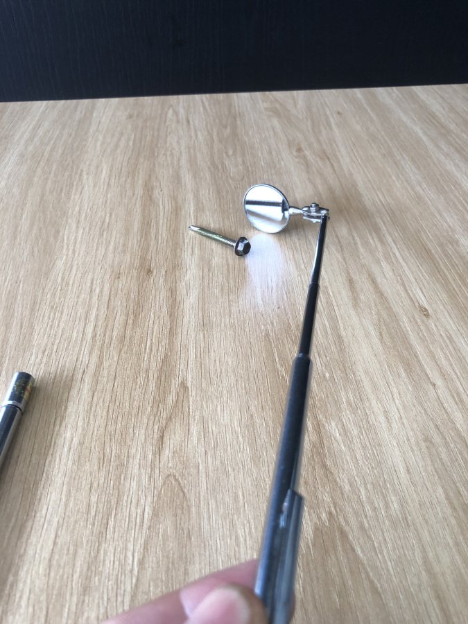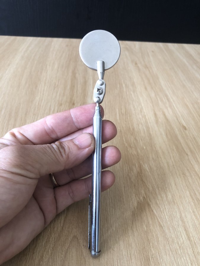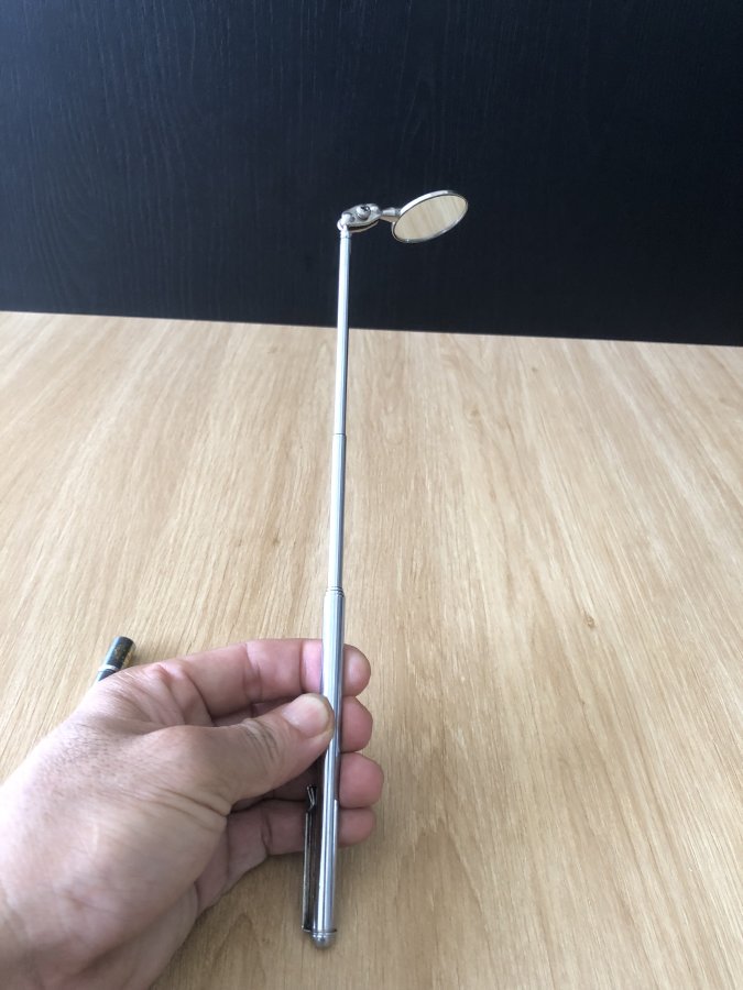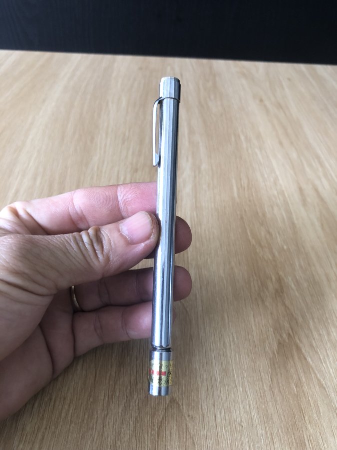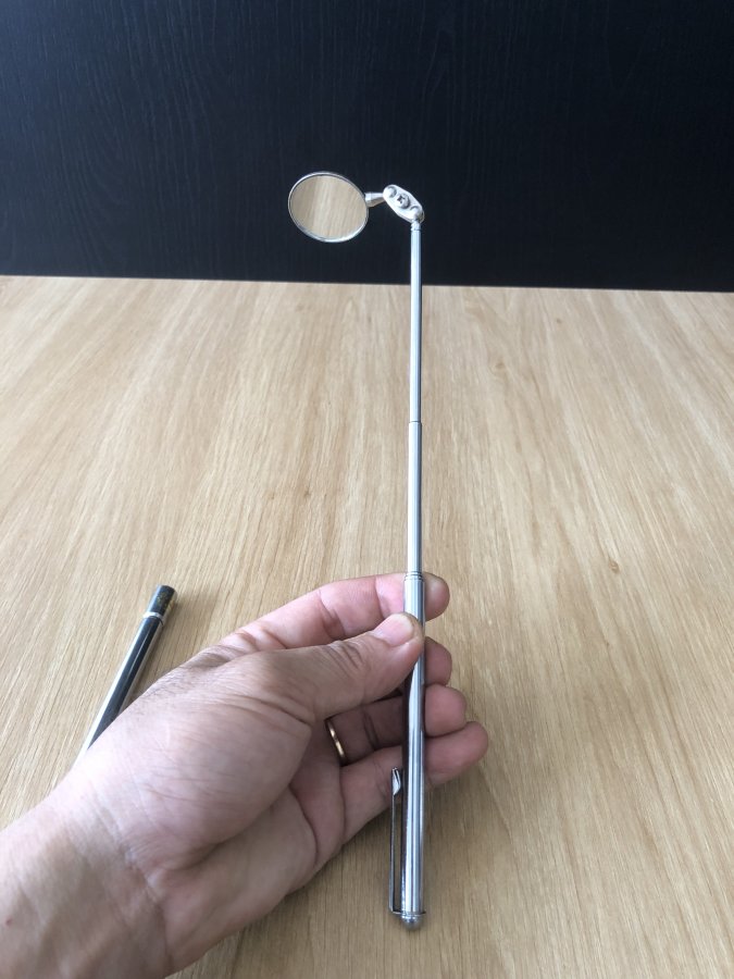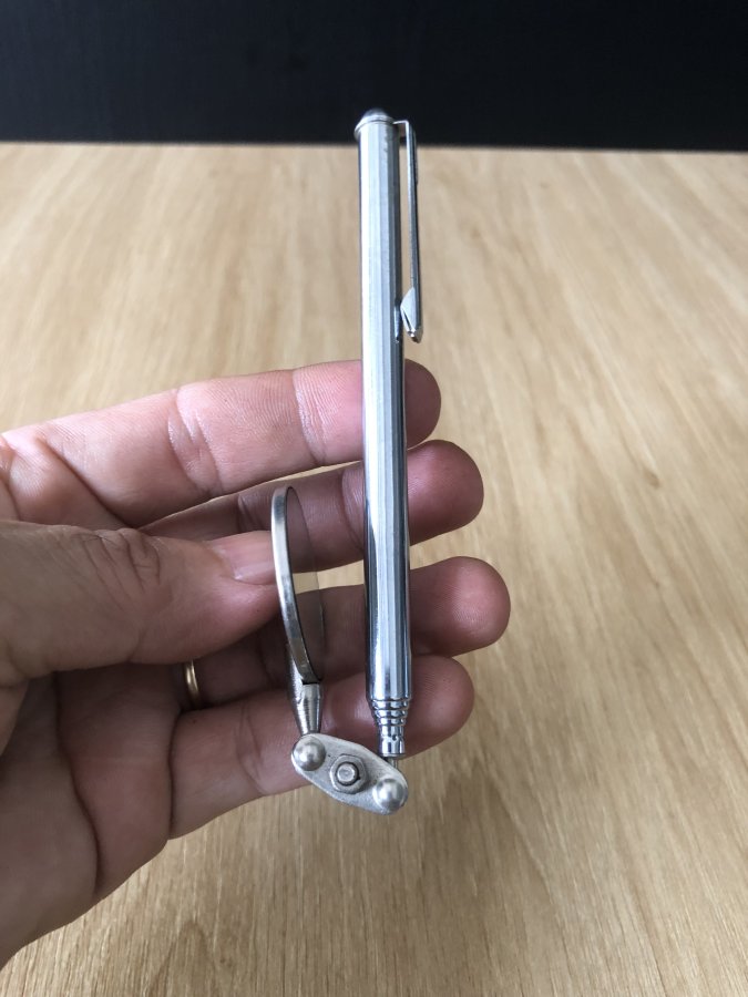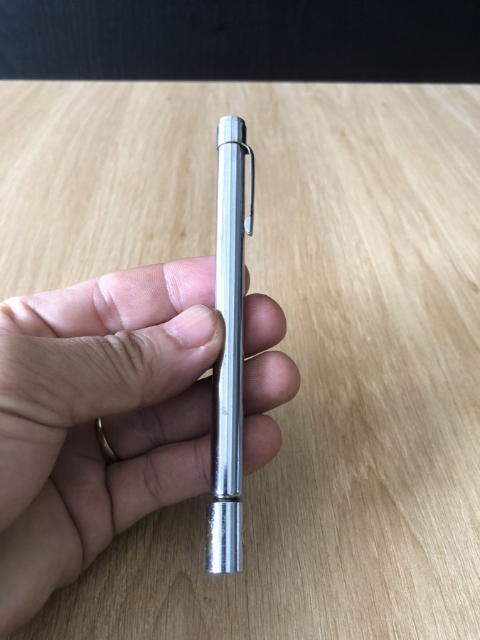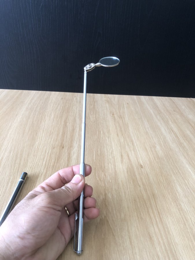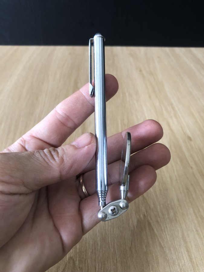 Dụng cụ còn rất mới,thân kim loại không hít nam châm,kéo ra thu vào rất gọn.Dụng cụ sử dụng lấy những vật dụng nhỏ như ốc vít rơi rớt trong hốc kẹt hay những chỗ hẹp sâu bên trong rất hay.Cảm ơn đã xem tin