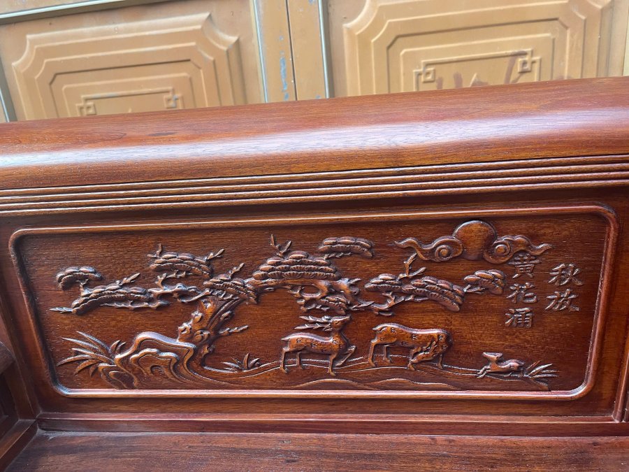 Bộ ghế trường kỷ gỗ gụ gồm 3 món gỗ gụ vân núi