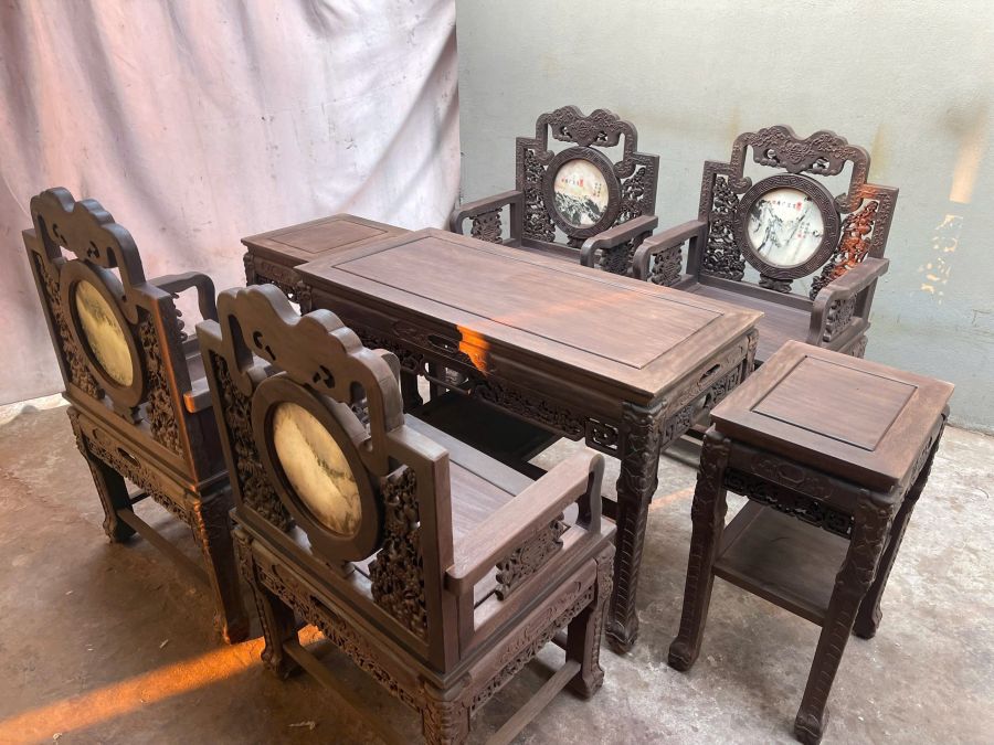 Bộ ghế vách hoa mai gỗ gụ 7 món