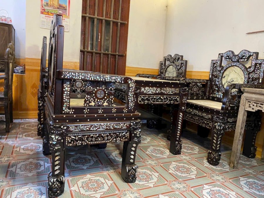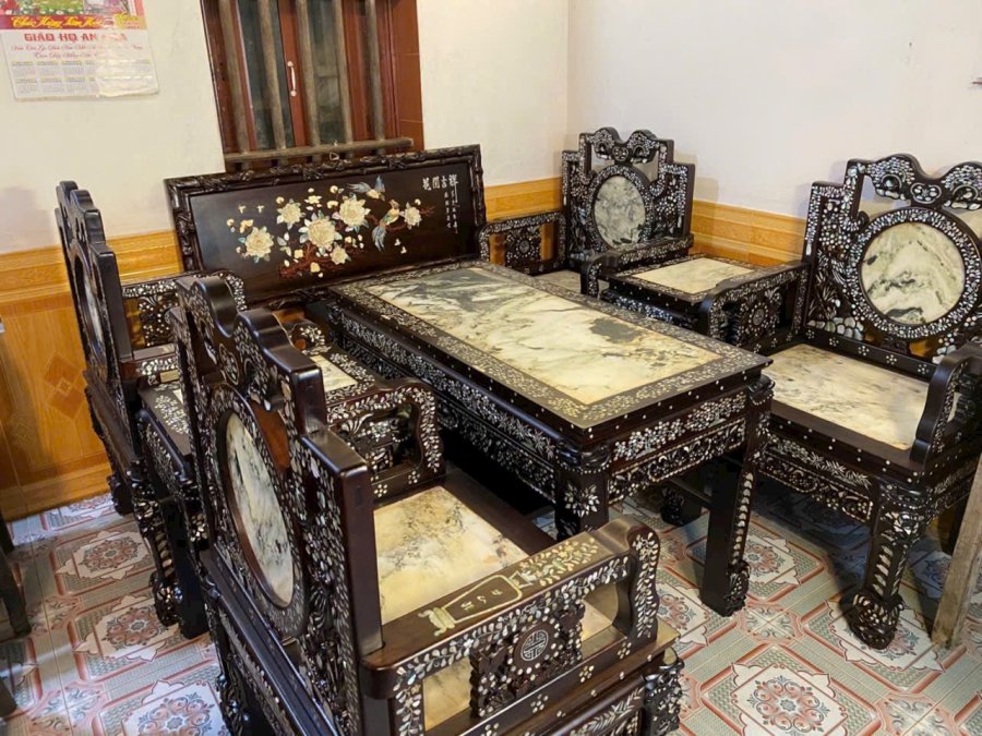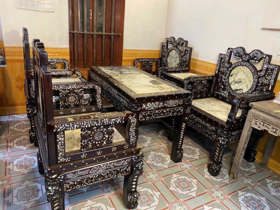 Bộ ghế vách tàu khảm ốc gỗ gụ 7 món
