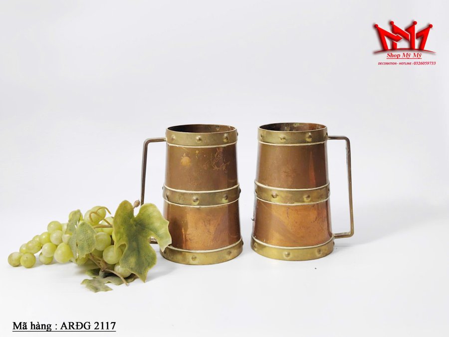 Bộ hai cốc tankard bằng đồng đỏ thiết kế cổ điển