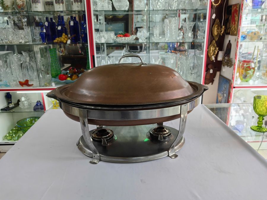 Bộ hâm nóng đồ ăn bằng đồng đỏ, hàng sưu tầm đồ xưa