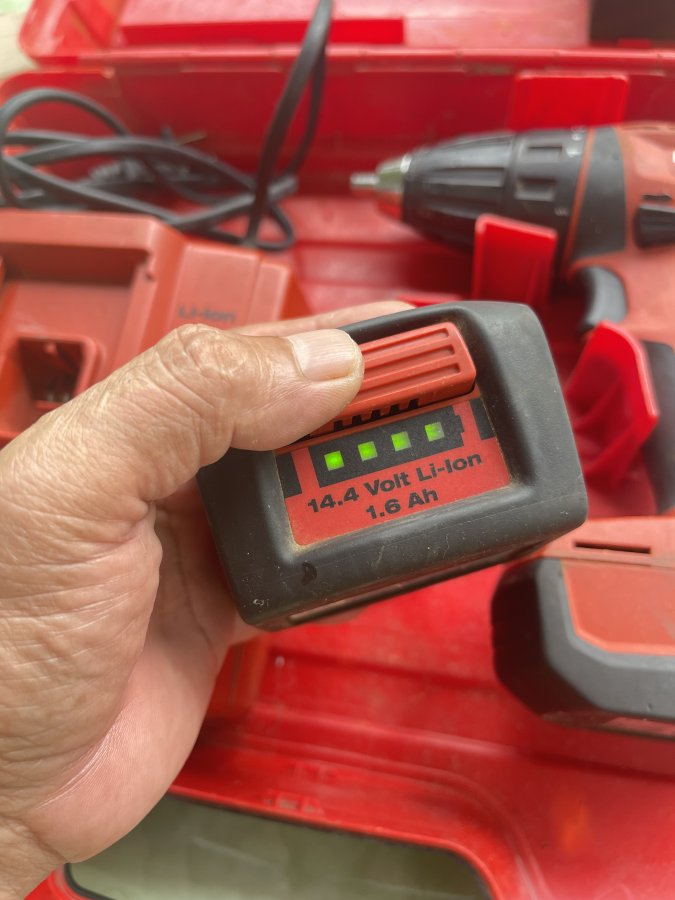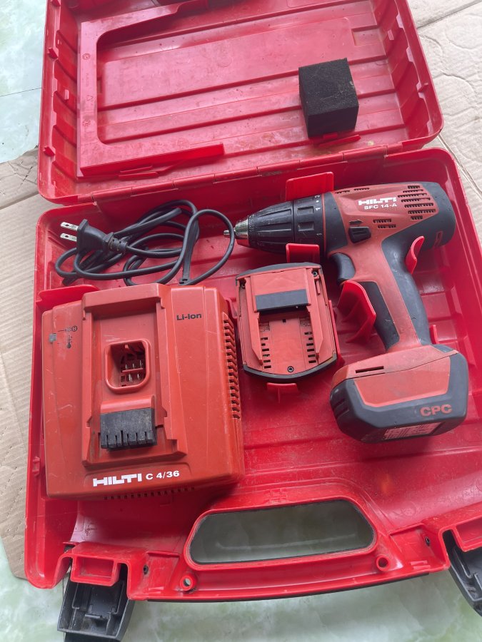Sản phẩm nguyên bộ bao gồm 1 khoan, 2 pin và 1 sạc còn lành nguyên hoạt động tốt tất cả các chức năng, pin cầm. Loại khoan có 15 cấp trượt bắt vít và khoan thường, hai chế độ nhanh chậm, điều tốc cò hoàn hảo. Cám ơn đã xem tin.