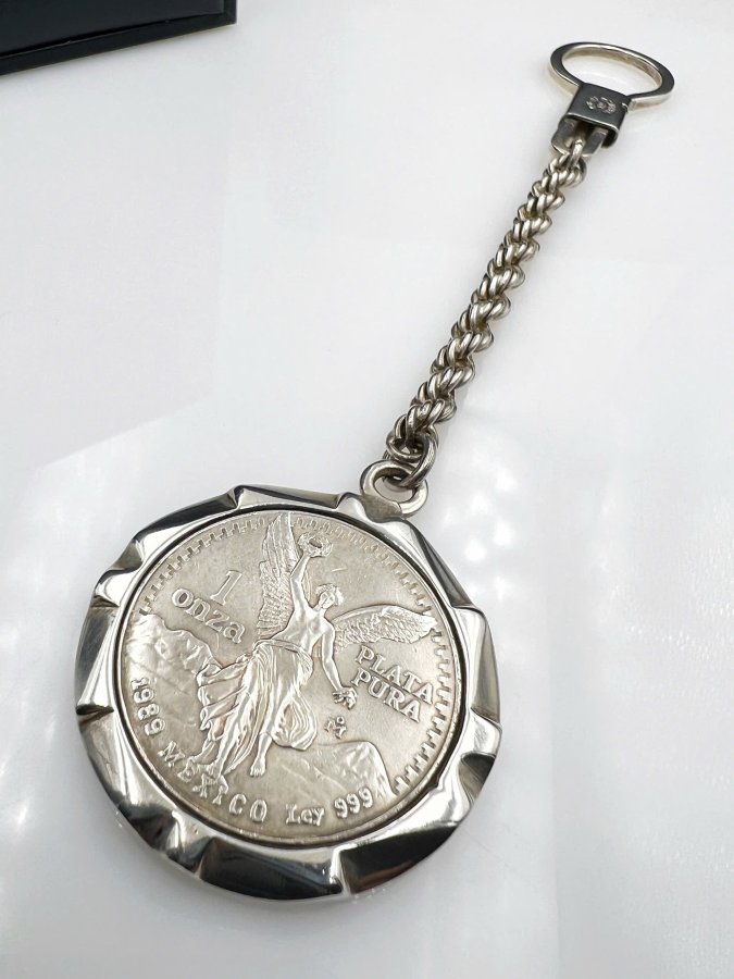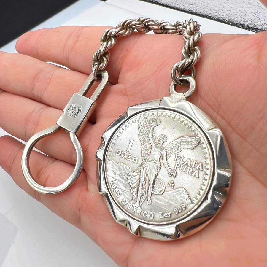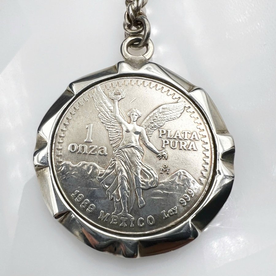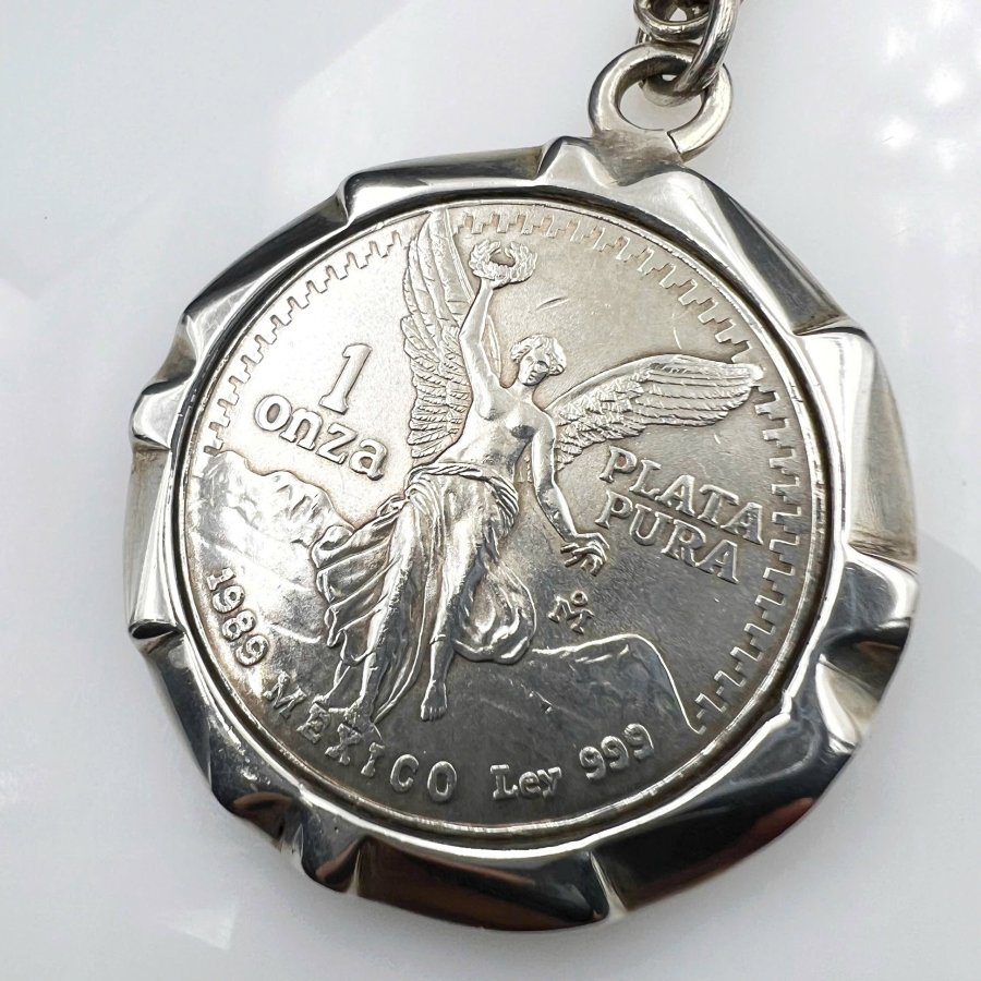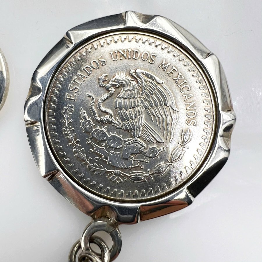 Bộ khoen móc và mặt xu bạc mexico năm 1989 hoa văn sắc nét rất đẹp, dài 18cm - ngang 26x45mm, nặng 71.5gram (19.07 chỉ)