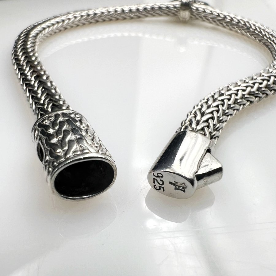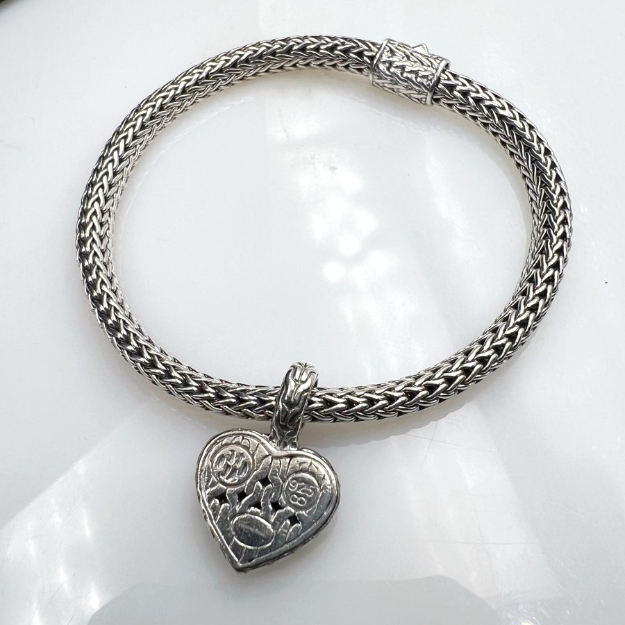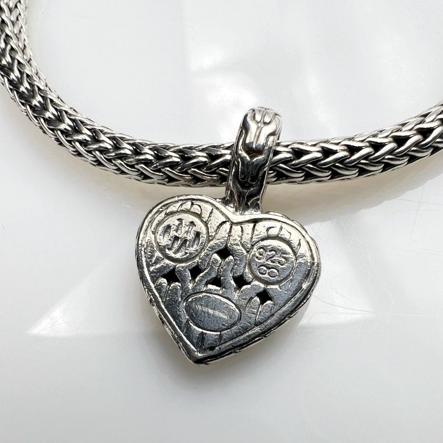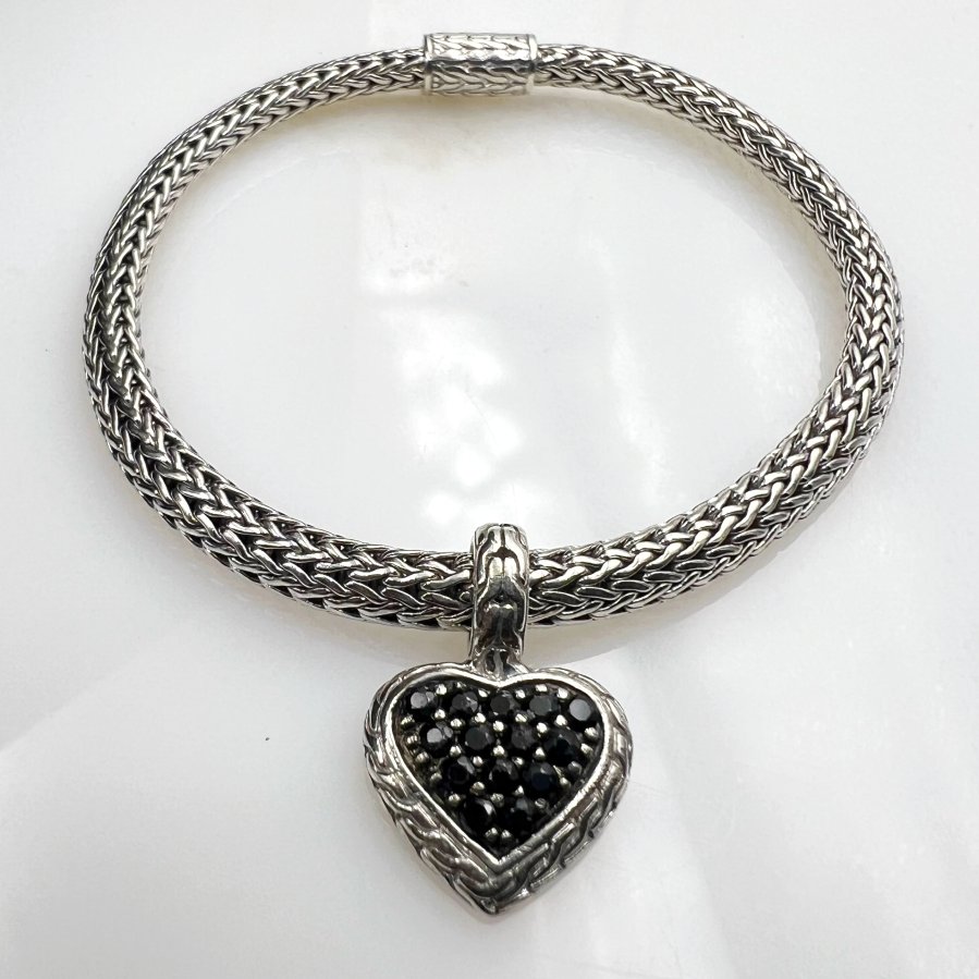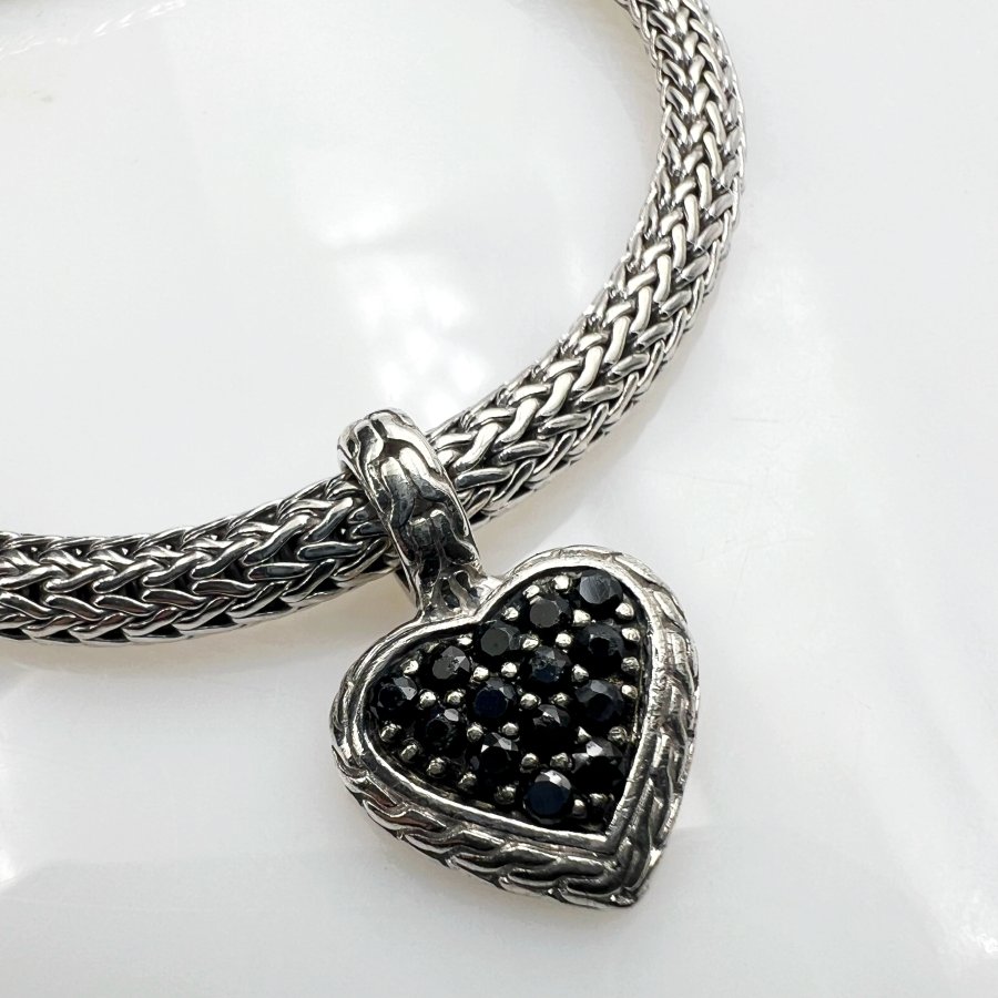 Bộ lắc và mặt trái tim bạc 925 hiệu John Hardy mới tinh kiểu dây vảy rắn hoa văn sắc nét đính full đá onyx đen rất đẹp, dây dài 19cm - bản ngang 5mm, mặt size 15x22mm, nặng 19.5gram (5.2 chỉ), giao thông 5tr2❤️ Thiên 0923.12.6789