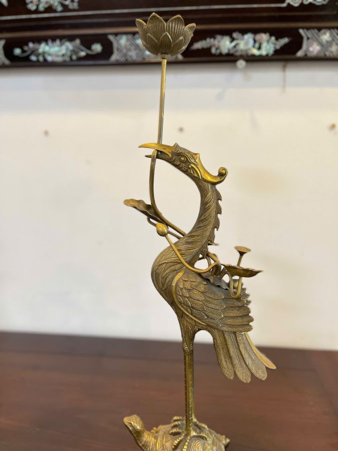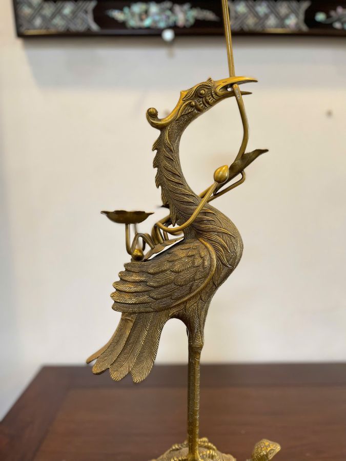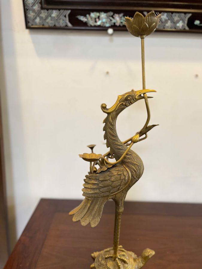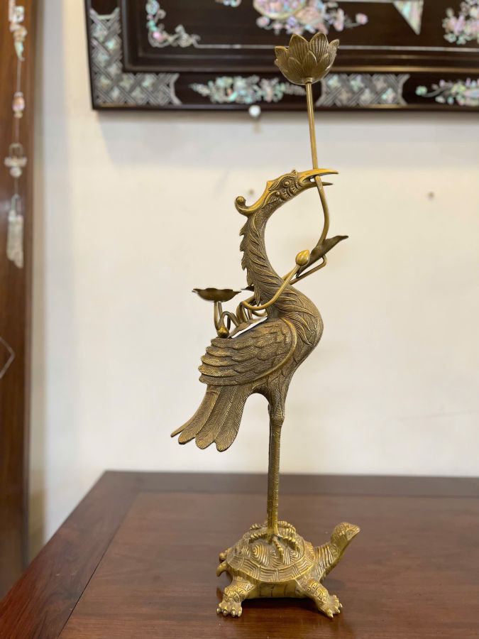 +Bộ sản phẩm gồm có 5 món: Lư đồng, đôi chân đèn, đôi hạc