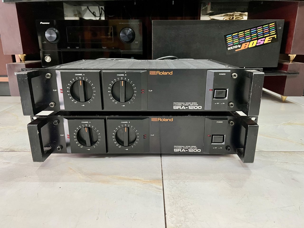 Cặp Power ROLAND SRA-1200 nguồn xuyến lớn , chạy 4 sò Sanken 2 vít … Chơi Stereo hoặc Mono block … Chất âm hay vượt tầm giá … 🌾 Giá 6tr0 / bộ . Lẻ 3tr2 / 1chiếc ☎️ Phone & Zalo 0903656333 SG
