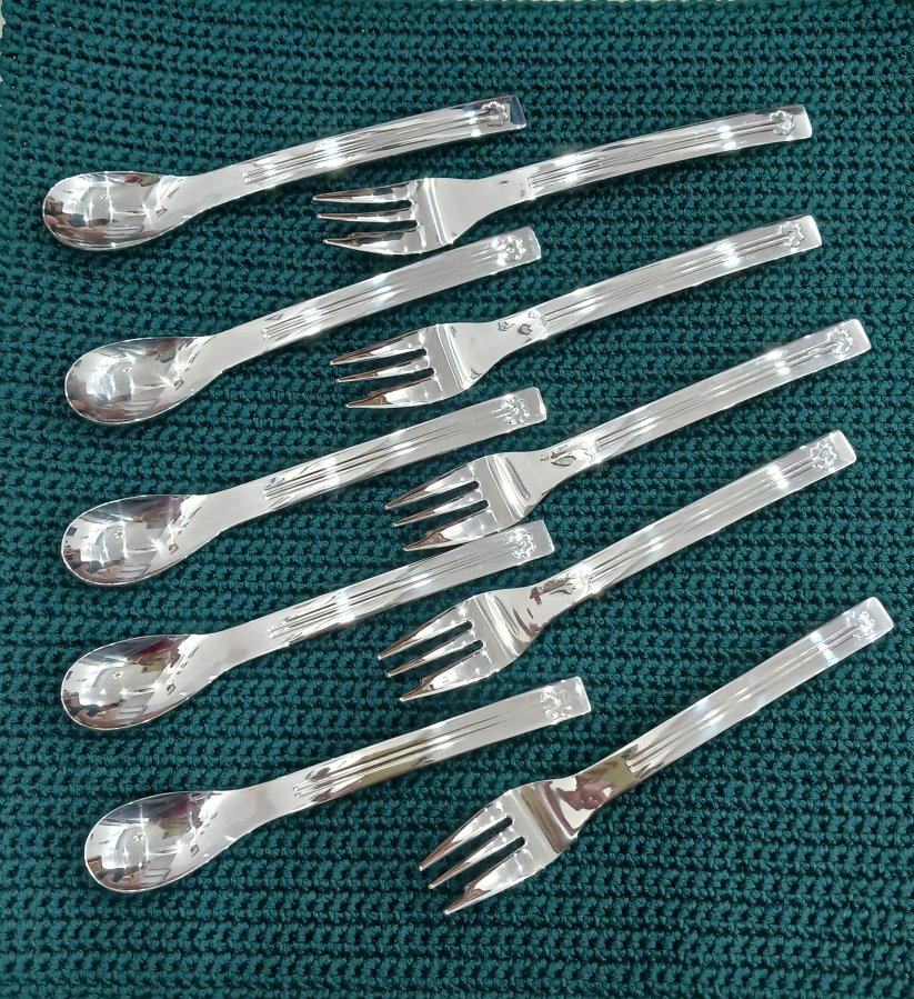 Bộ muỗng + nĩa hiệu Pierr.e Car.din mới trên 99%, gần như chưa qua sd. Chất inox 18-8 sáng bóng như soi gương.