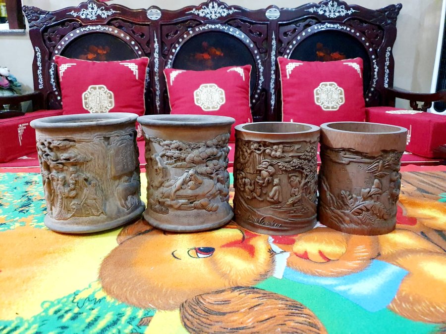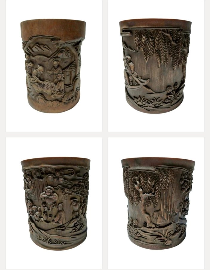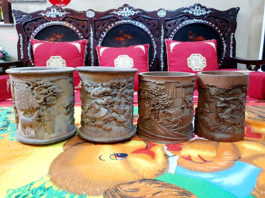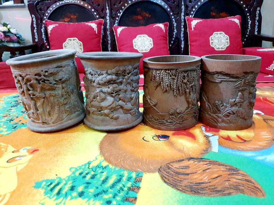 Bộ ống bút bằng tre hàng điêu khắc xưa.