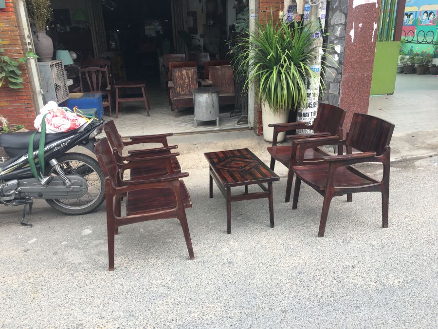 Bán tại nhà bộ salon cóc 4 ghế 1 bàn. Gõ gõ, bằng lăng..