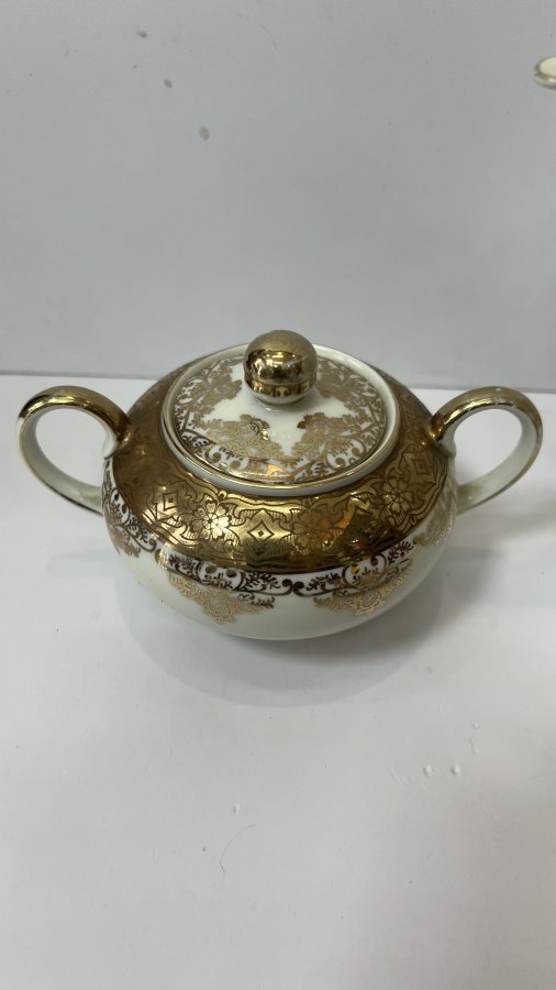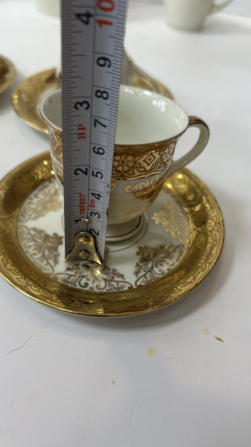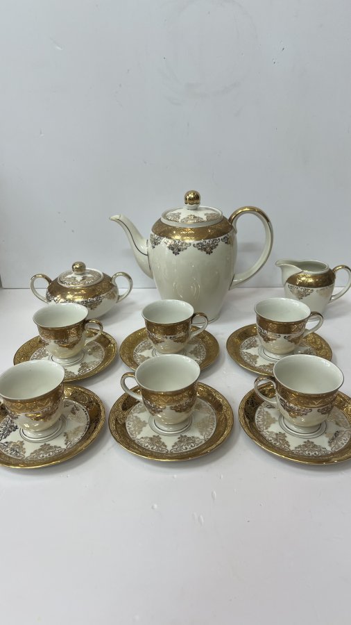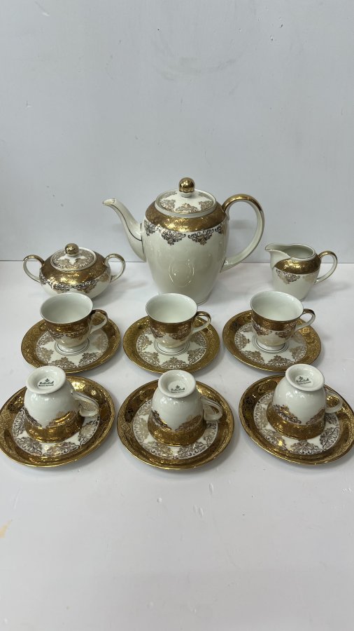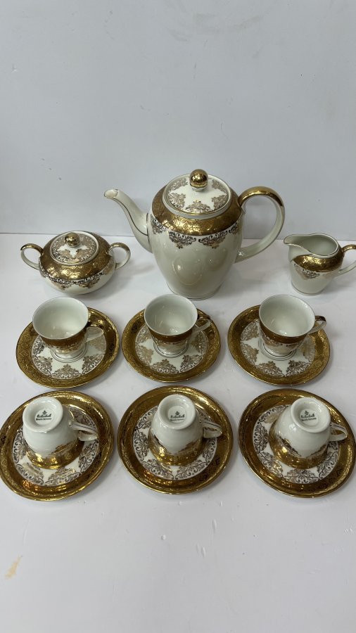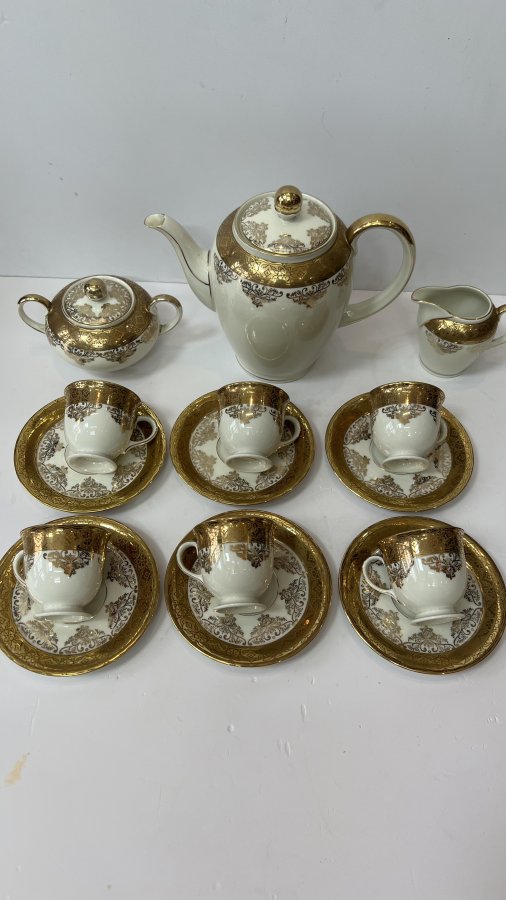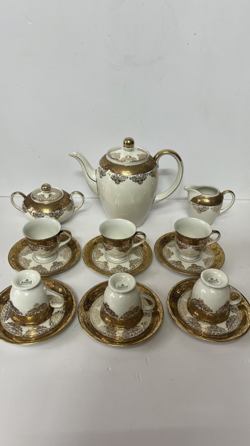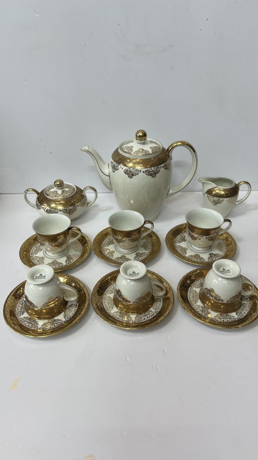 Bộ tách trà sứ của hãng Eschenbach, Bavaria-Germany. sx thập niên 1960. một thương hiệu Eschenbach, nổi tiếng về đồ sứ chất lượng cao tại Đức. Bộ tách và đĩa có họa tiết mạ vàng rất sang trọng.