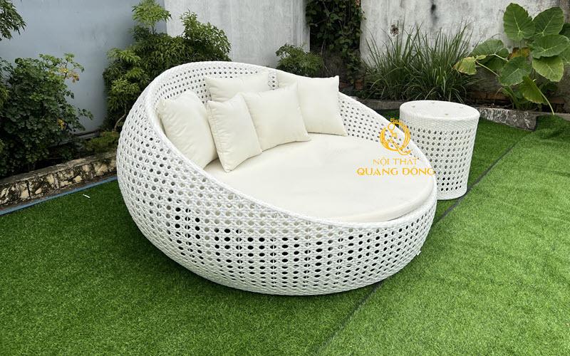 Giường tắm nắng QD-553 được đan bằng sợi mây nhựa tròn cao cấp