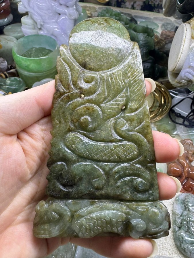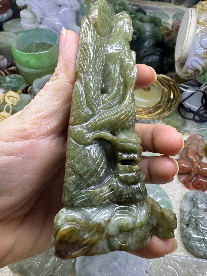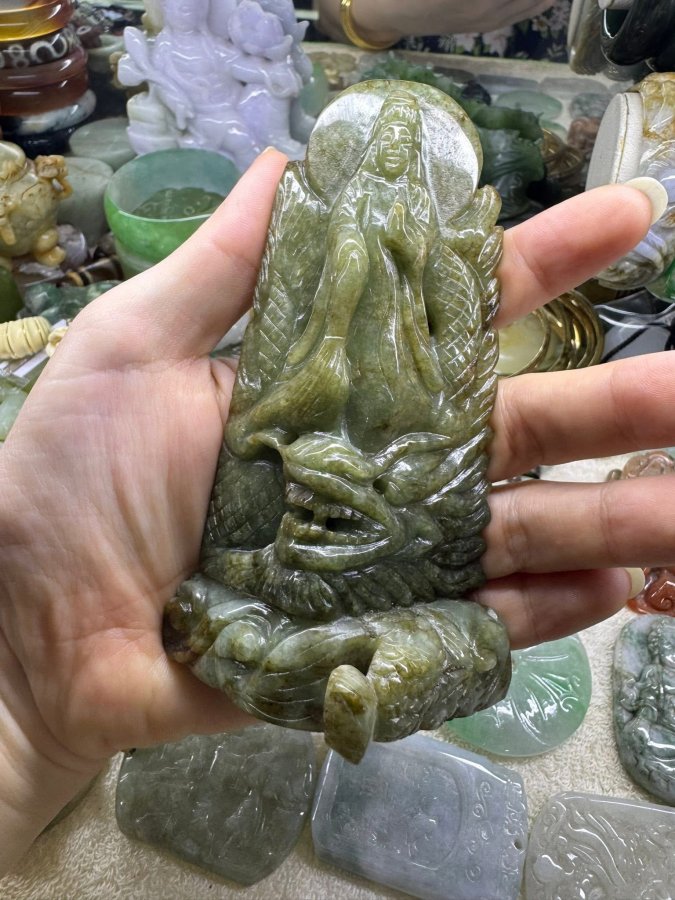 Bồ Tát Quán Thế Âm Ngọc Cẩm thạch chế tác xưa cổ Trân phẩm để xe hơi