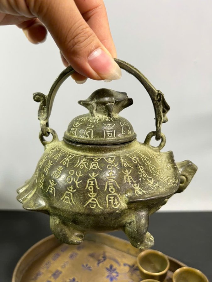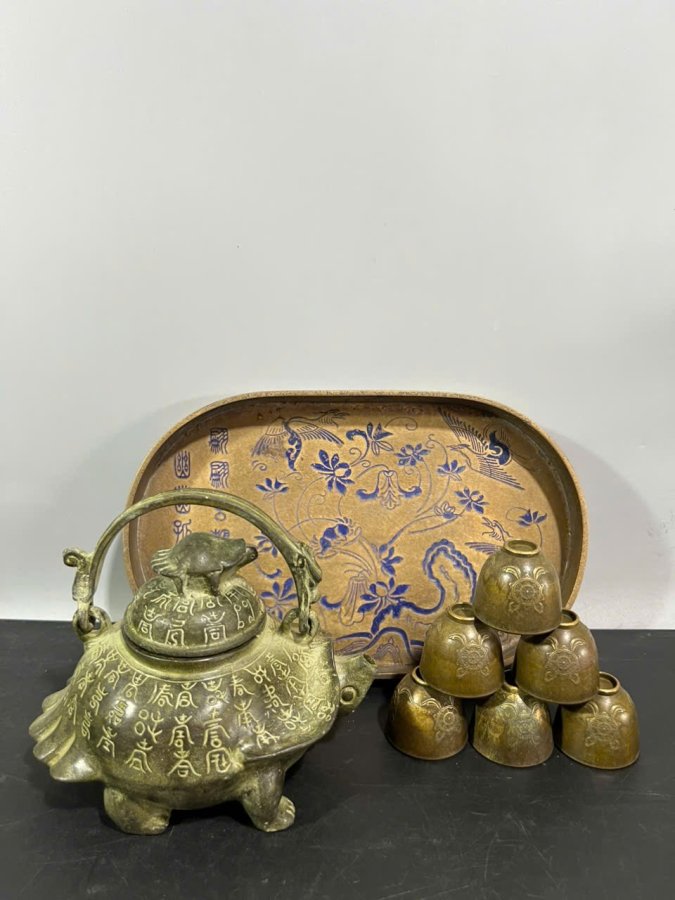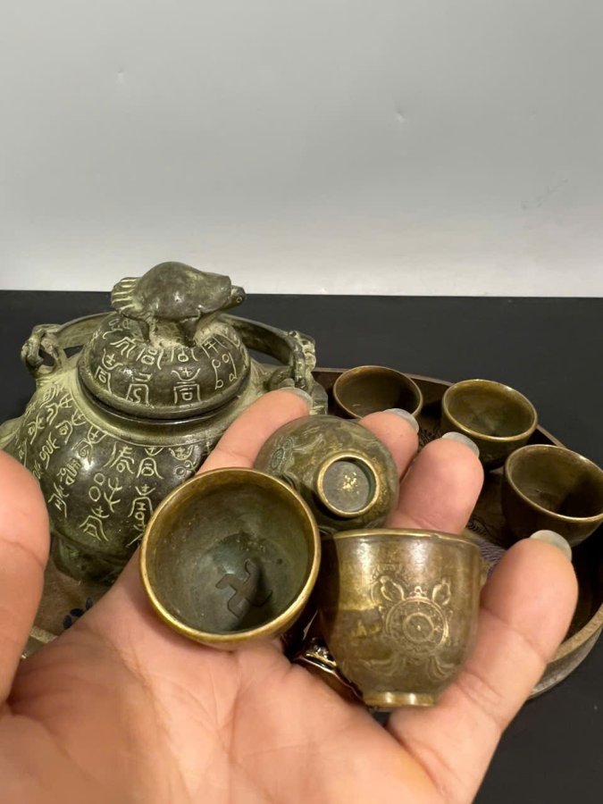 👉 Ấm R-ùa độc đáo. Chén nhỏ, khay hoa văn dày rặn. Dung tích ấm tầm 250ml