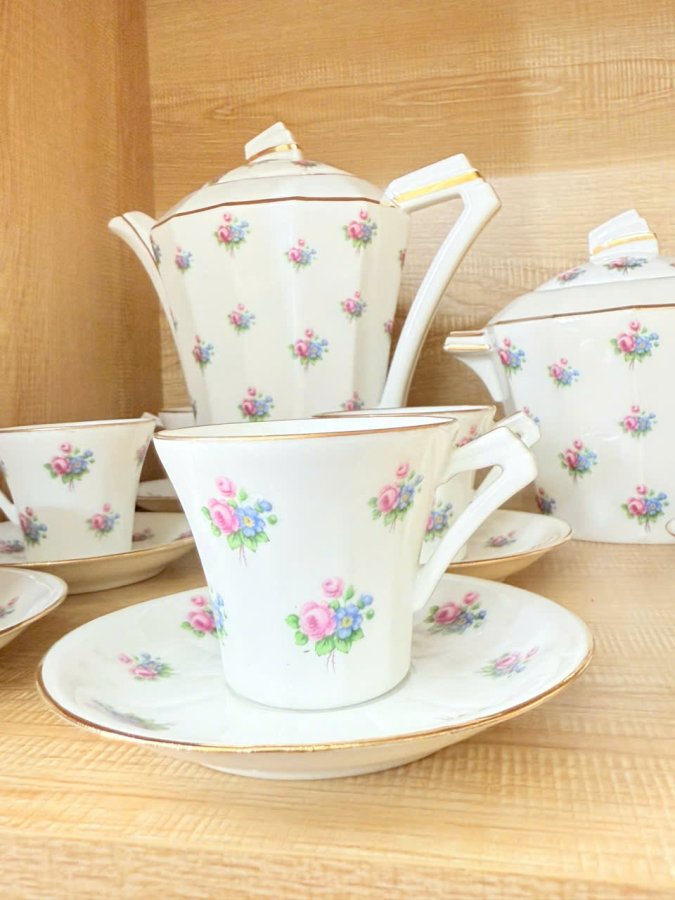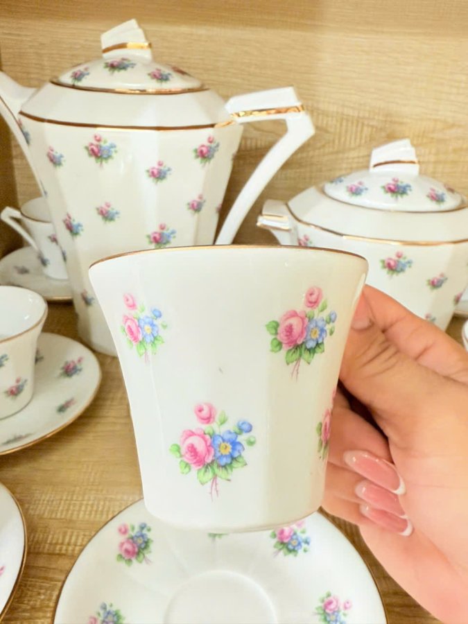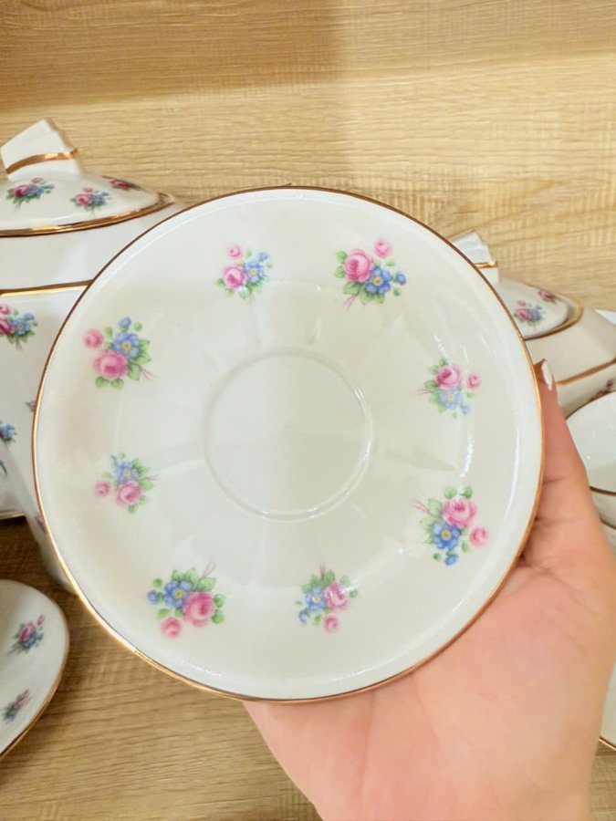 Bộ trà sứ Limoges Pháp cổ hoại tiết Hoa Hồng