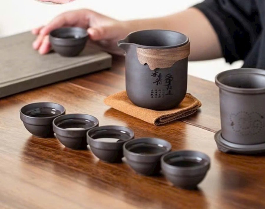 Bộ trà tử sa tím gồm cả túi giá tốt .