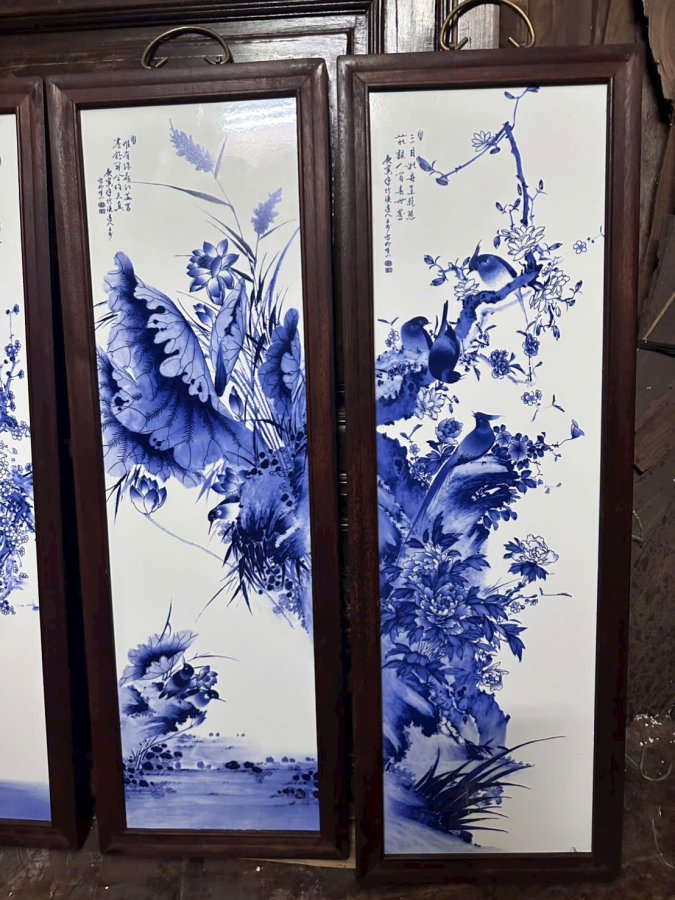 Bộ tranh sứ men tràm Kt 27x 80cm