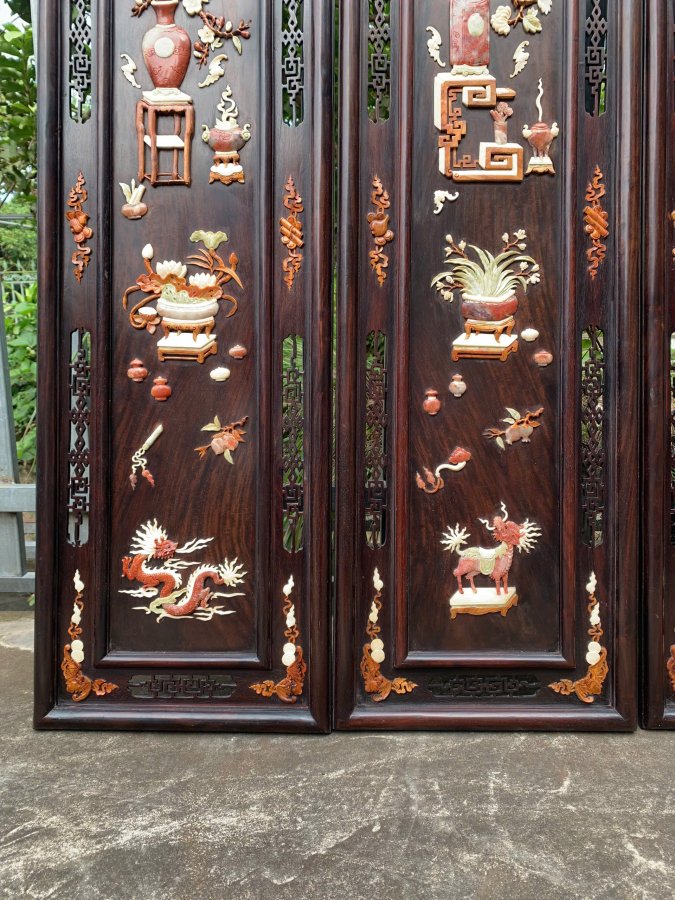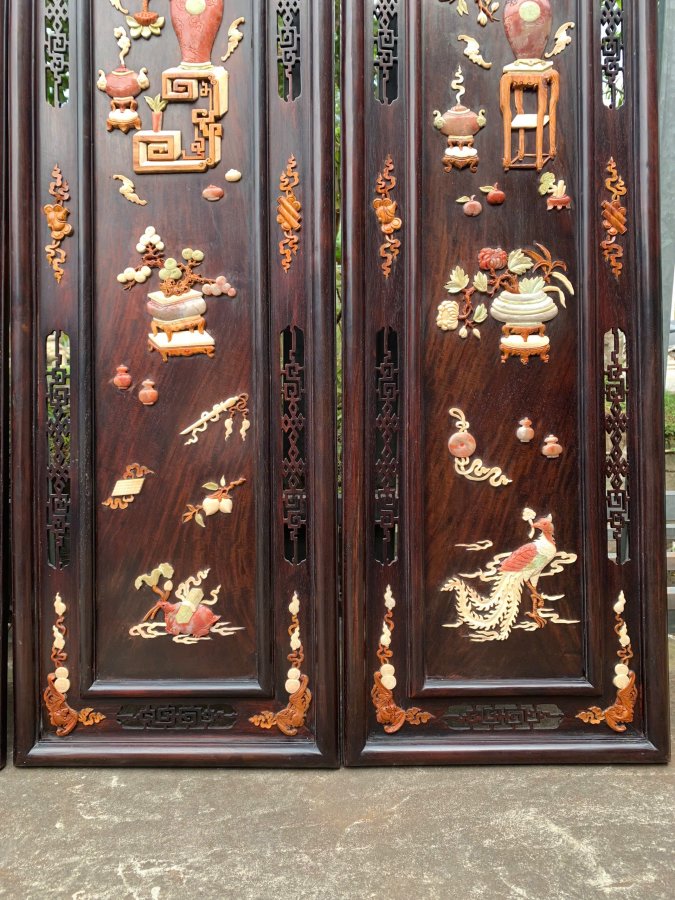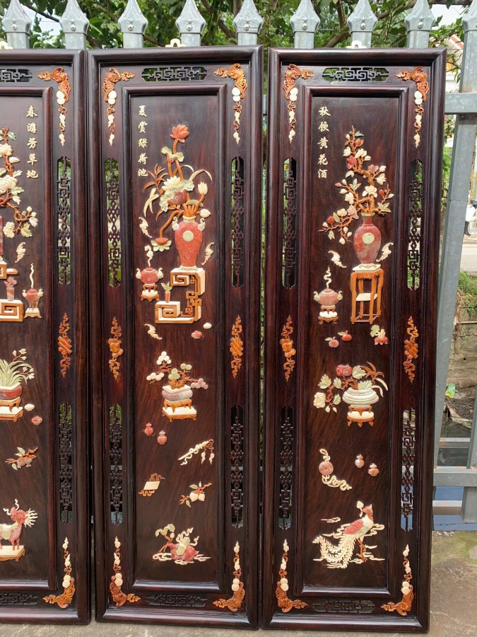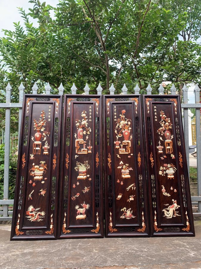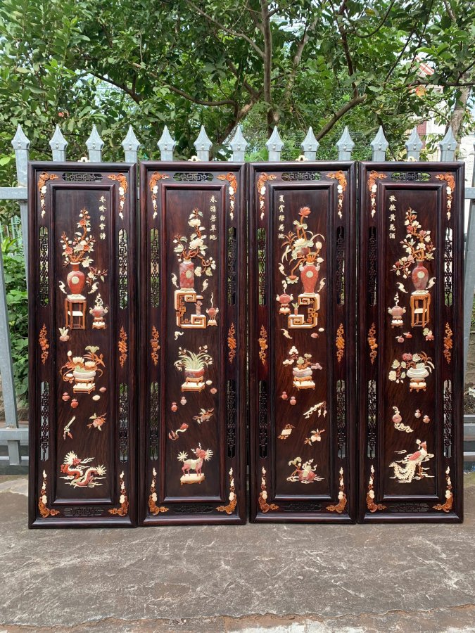 Bộ tranh tứ bình gỗ trắc khảm nổi Kt 1m25-37