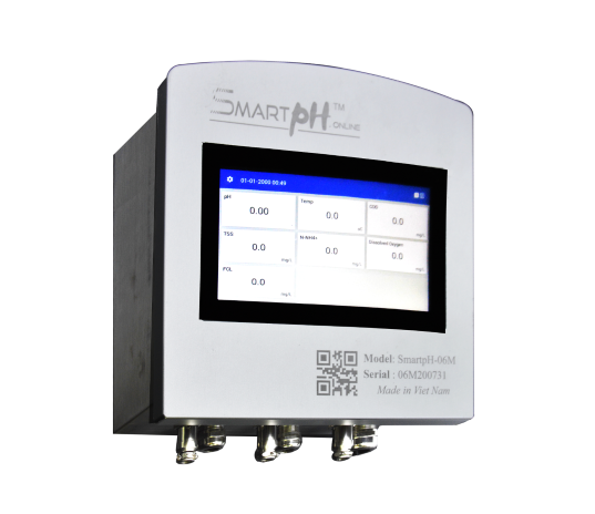 - SmartpH-06M là bộ hiển thị và điều khiển thông minh có khả năng đo được 08 chỉ tiêu cùng lúc COD/ BOD/ Ph/ Oc/ Cond./ TSS/ NH4+/ NO3- .v.v. bằng bộ vi xử lý. Với màn hình LCD rộng có thể hiển thị cùng lúc các giá trị đo. Vỏ được thiết kế có thể gắn trên panel tủ điện.