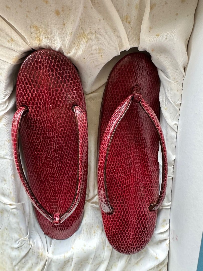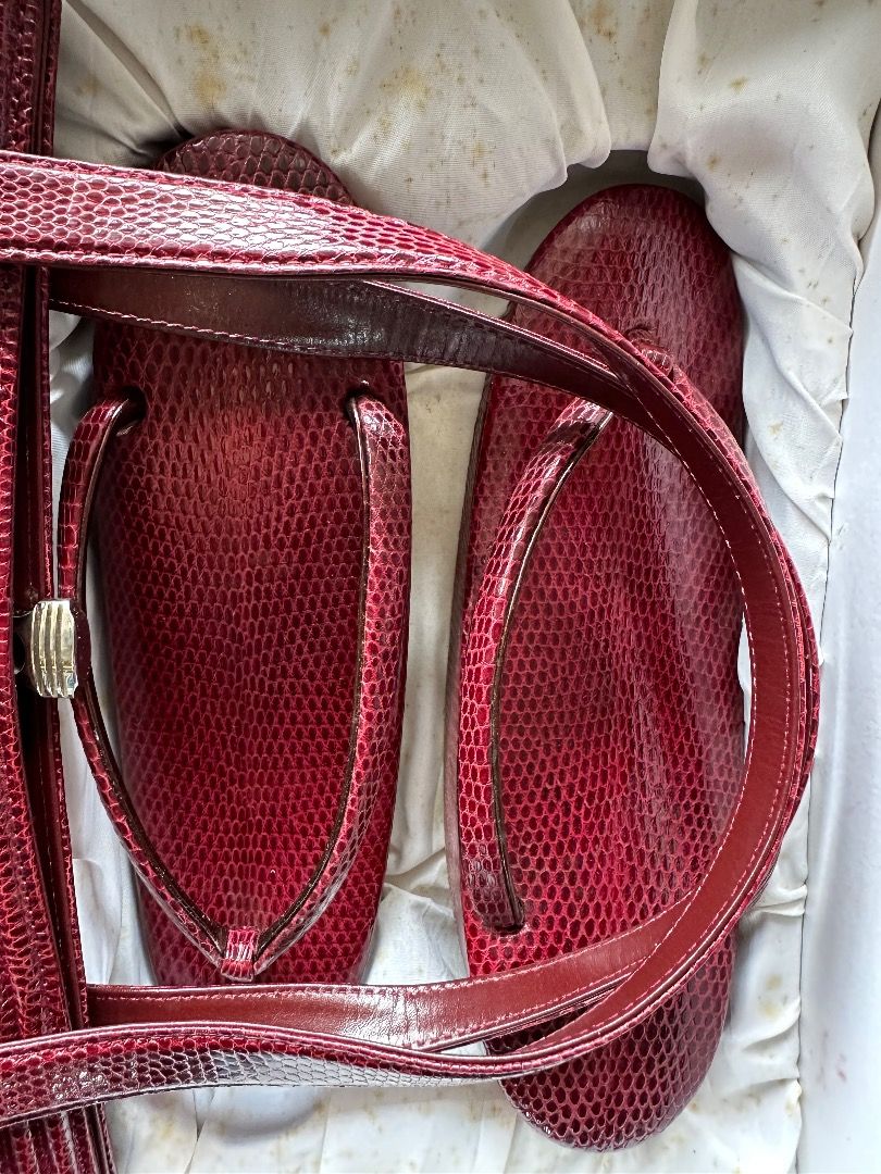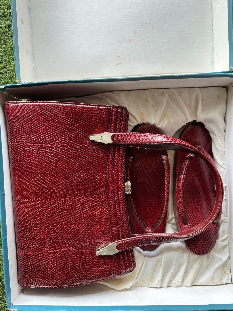 Hàng cực vip cho ae mua tặng vk hay ng yêu bộ dép và túi new full box làm từ da kỳ nhông màu đỏ tượng trưng cho sự may mắn . Giá niêm yết 130.000 yên gần 25tr