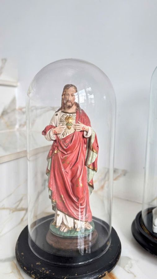 👉👉 Bộ tượng sứ xưa pháp cực đẹp - Ly chụp thủy tinh đế gỗ tượng siêu nét sắc sảo