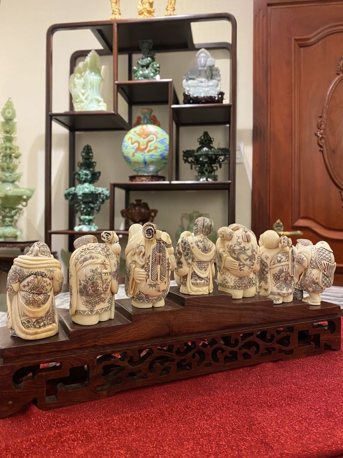 - Hôm nay Thành Trung xin được mời các Bác thưởng ngoạn và giao lưu bộ tượng Thất Phúc Thần được chế tác bằng Ngà cổ , do các nghệ nhân Nhật Bản làm các đây rất nhiều năm .