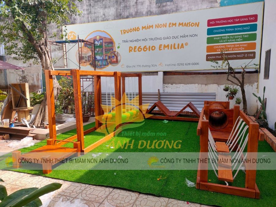 Bộ đồ chơi liên hoàn gỗ được kết cấu chắc chắn, an toàn, cực kì bền bỉ với điều kiện khí hậu Việt Nam, đảm bảo an toàn cho các bé khi vui chơi và tiếp xúc.