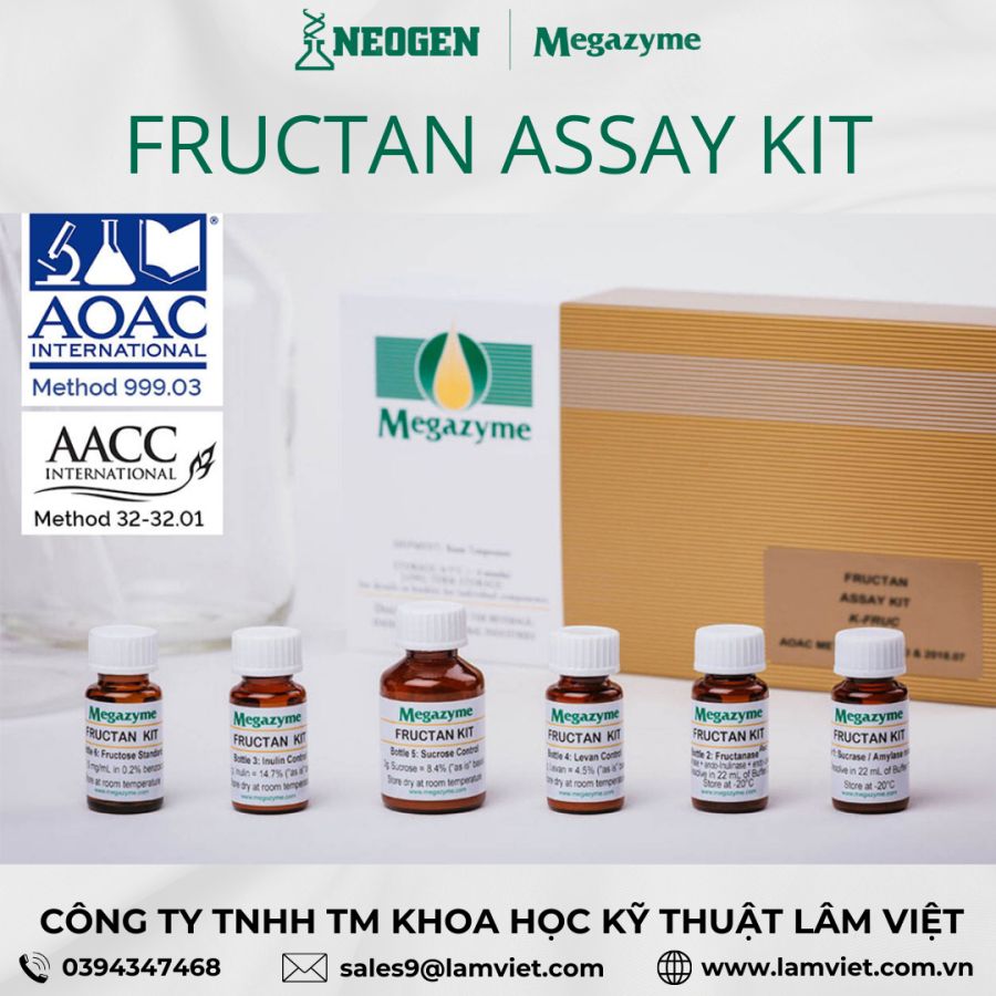 Fructan Assay Kit là một phương pháp được sử dụng để đo lường cụ thể fructan trong chiết xuất thực vật, thức ăn chăn nuôi và các sản phẩm thực phẩm có chứa tinh bột, sucrose và các loại đường khác.