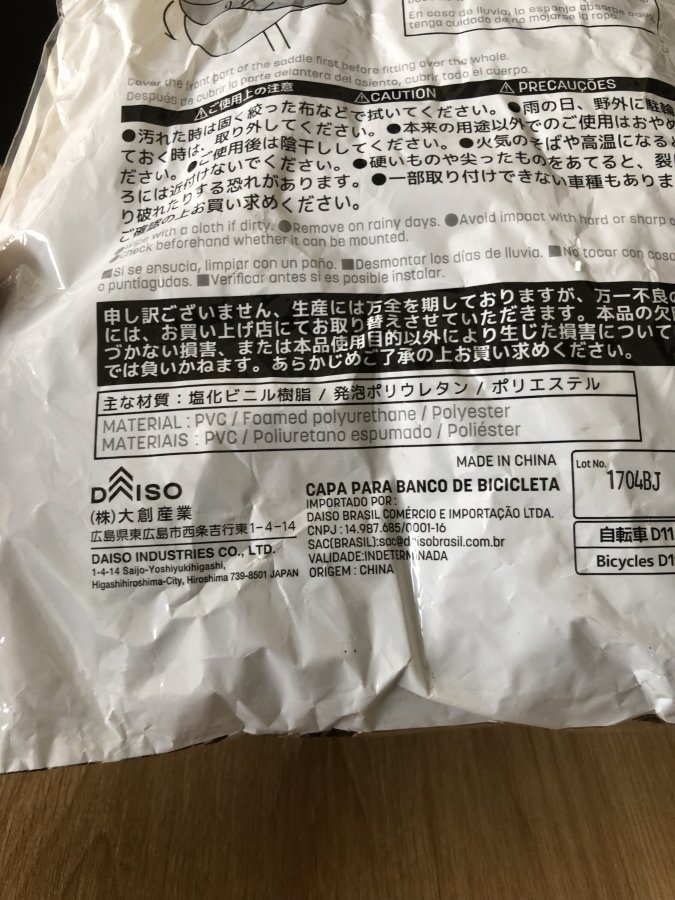 Bọc bảo vệ yên xe đạp Daiso mới chưa sử dụng(đã bán)