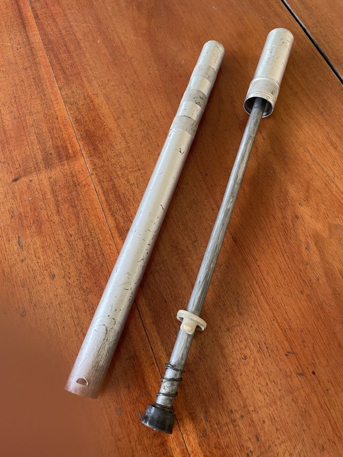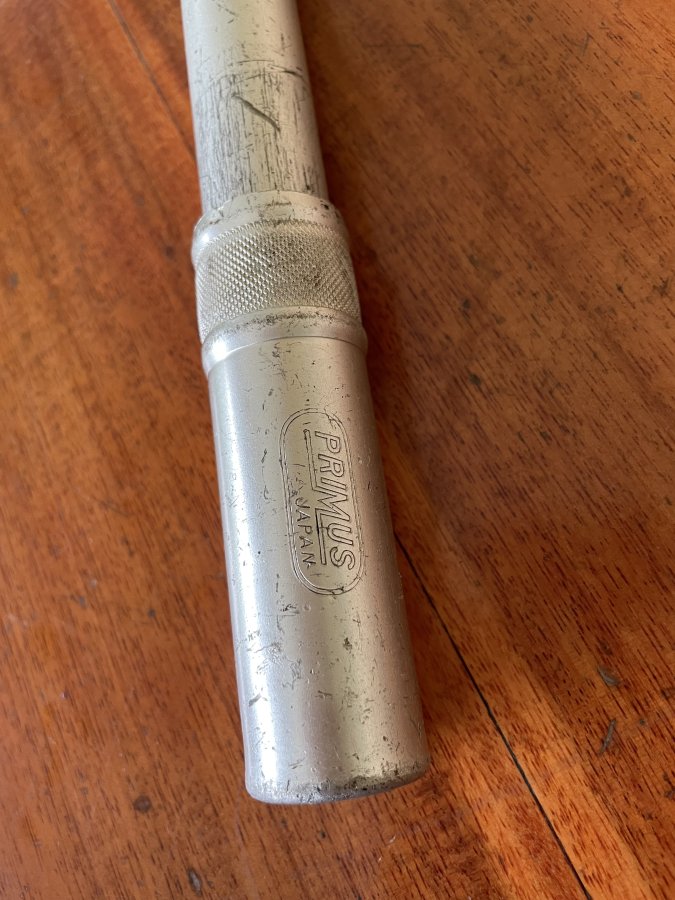 Bán cây bơm tay treo xe đạp cuộc Primus Japan còn khá đẹp. Hàng xưa, thân ống đều bằng nhôm rất nhẹ, nặng 100gr. Lò xo, phốt bơm tất cả đều nguyên zin, bơm rất nhẹ nhưng hơi rất nhiều và rất kín. Bơm thiếu dây bơm rời (Shopee có bán)