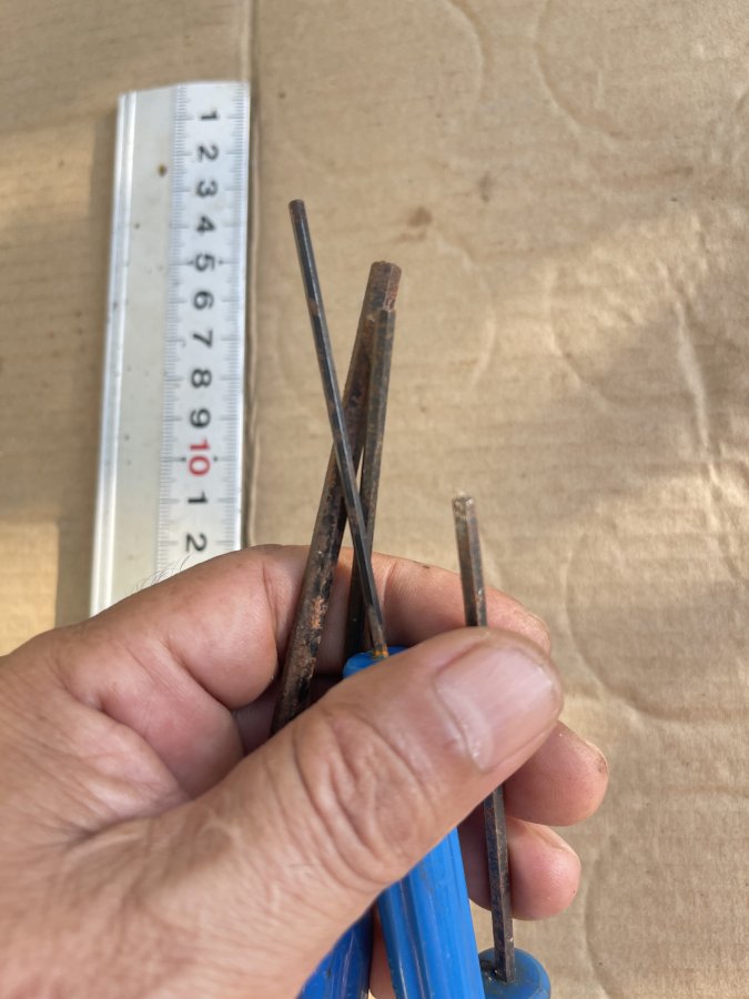 Sản phẩm gồm lục giác 2, 2.5, 3 và 4mm còn lành nguyên không trầy xước cấn mẻ, do chưa vệ sinh nên còn dính bụi bẩn. Cám ơn đã xem tin.