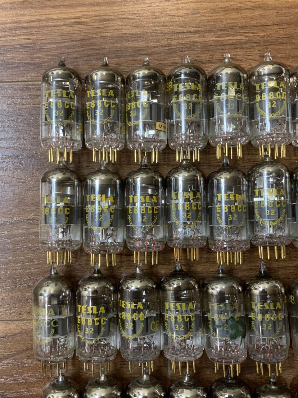 Bóng đèn điện tử E88cc/ 6DJ8/ 6922 – Tesla – Chân vàng – Phiến hộp. Giá: 450k/bóng.