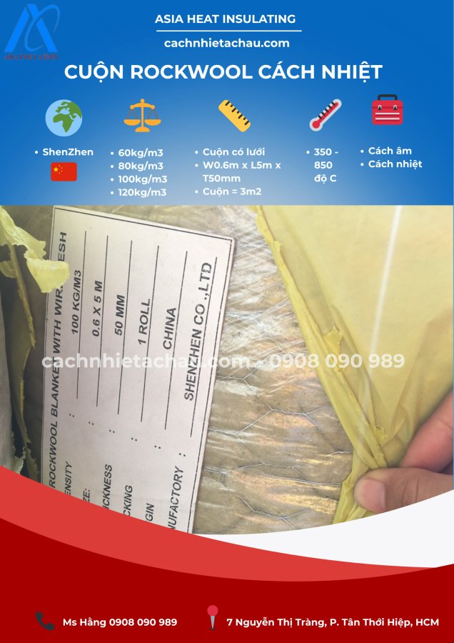 - Cuộn cách nhiệt Rockwool – Rockwool Blanket là loại sản phẩm được ép thành dạng cuộn mềm và rất dẻo dai, dễ dàng trải và cuộn khi thi công.