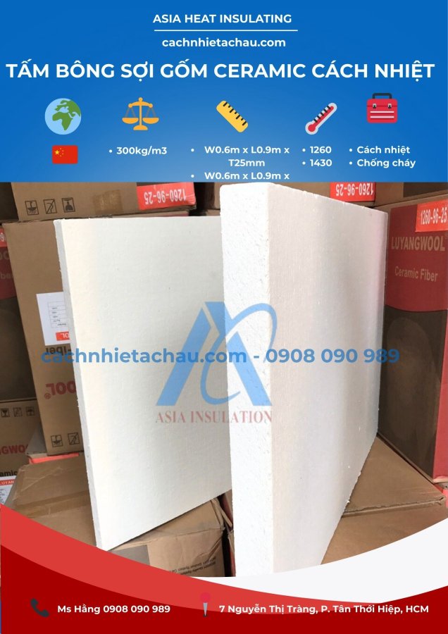 Bông gốm ceramic dạng tấm cách nhiệt cực tốt và có khả năng chịu nhiệt lên đến 1260°C. Vì vậy sản phẩm được tin dùng trong ứng dụng cách nhiệt chống cháy của nhiều dự án, nhiều ngành công nghiệp khác nhau như: