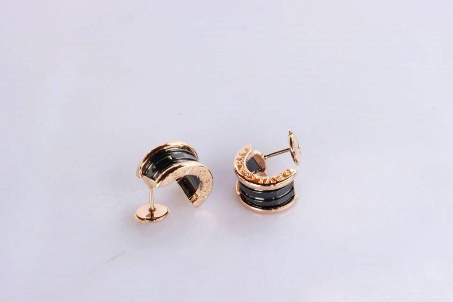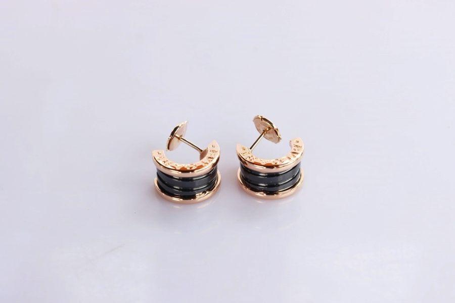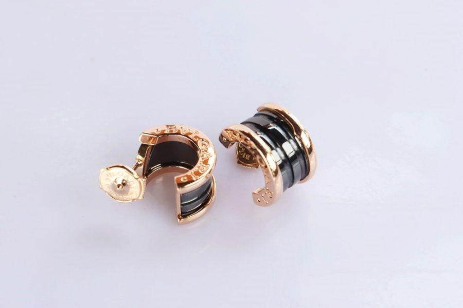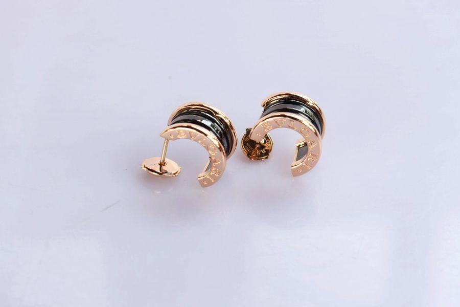 Bông tai Nữ BVLgari Vàng Hồng 18K ( Au 750 ) & Ceramic đen Fullbox