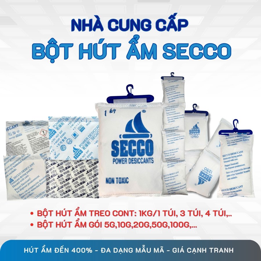 Trong chuỗi cung ứng quốc tế, tình trạng \mưa container\ và độ ẩm cao là tác nhân hàng đầu gây hư hỏng hàng hóa. Bột hút ẩm Secco 2 lớp tự hào là giải pháp bảo quản chuyên sâu, giúp các đơn vị Logistics tối ưu hóa chi phí và đảm bảo an toàn tuyệt đối cho mọi kiện hàng.