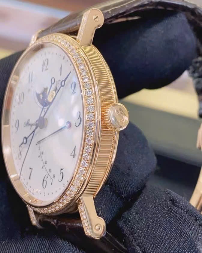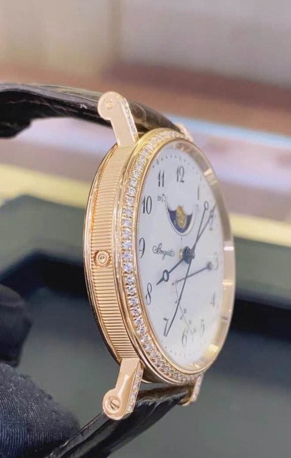Breguet Classique 8788BR/29/986/DD00 Moonphase- kim cương zin hãng 96 viên kim cương- Size 36mm dễ nên tay- Vỏ khóa vàng đúc 18k vàng Hồng - Tình trạng chỉ còn đồng hồ
