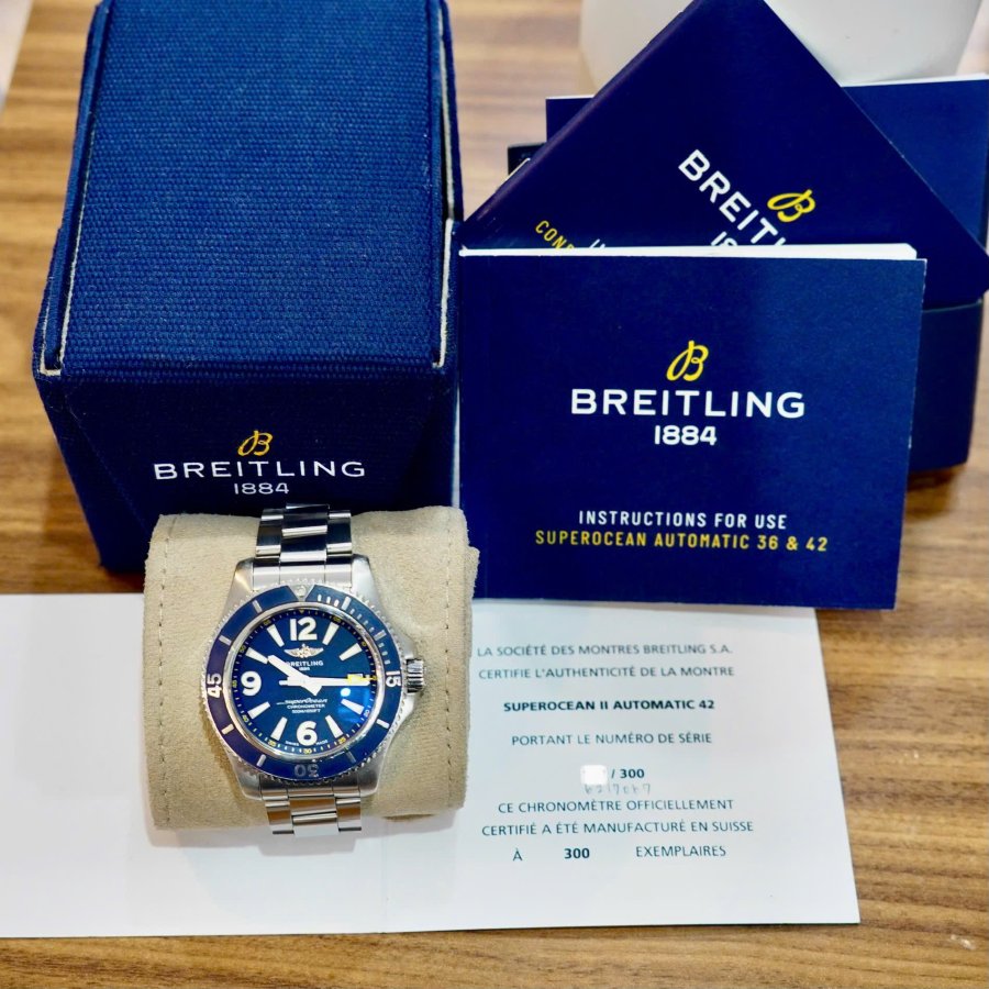 Breitlling Superocean 42 A17366 Limited – Không phải bản phổ thông, không phải bản cửa hàng nào cũng có. Đây là phiên bản giới hạn số lượng 300 chiếc, màu xanh đậm độc quyền, cọc số lớn Superocean đời mới nhất.