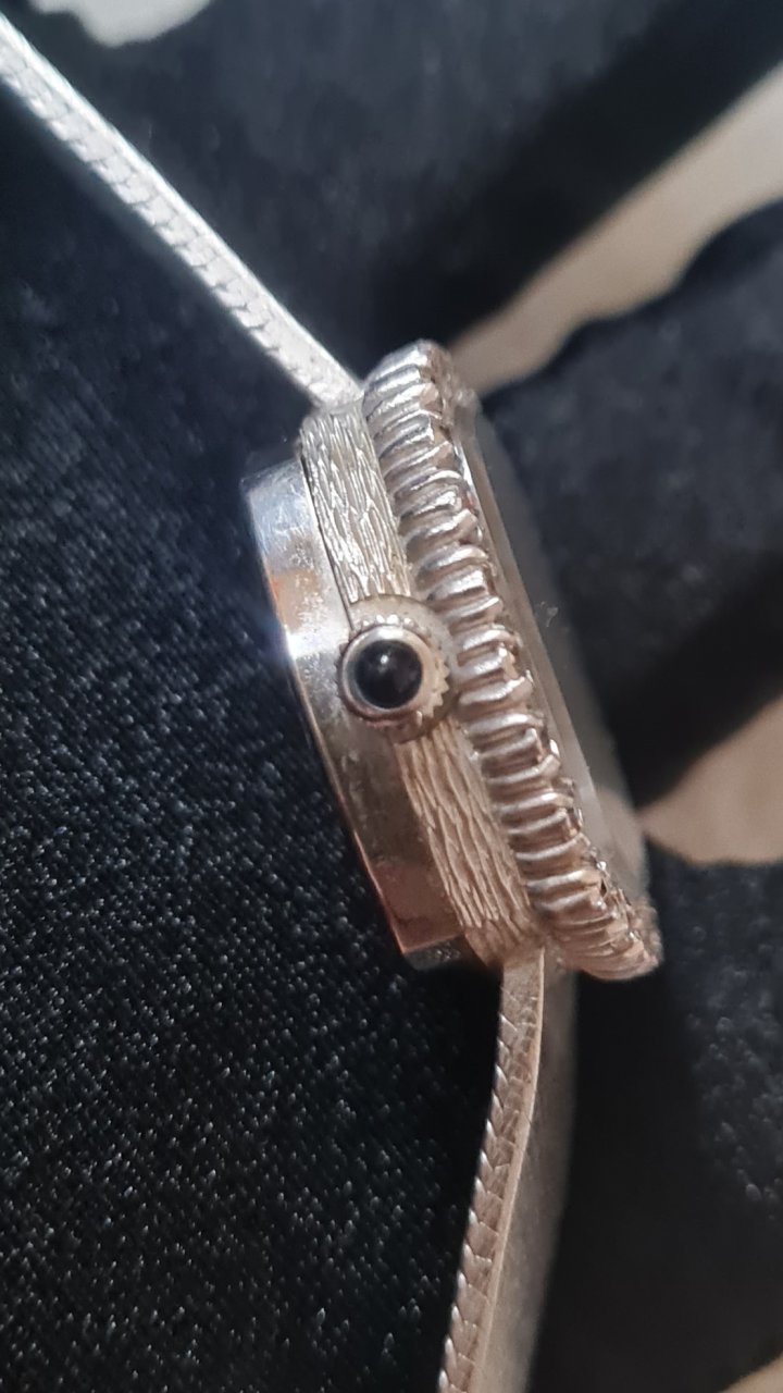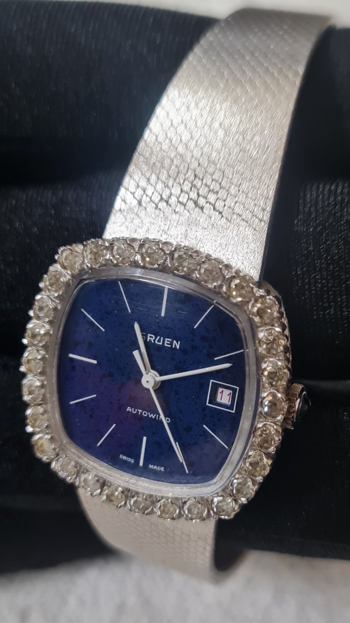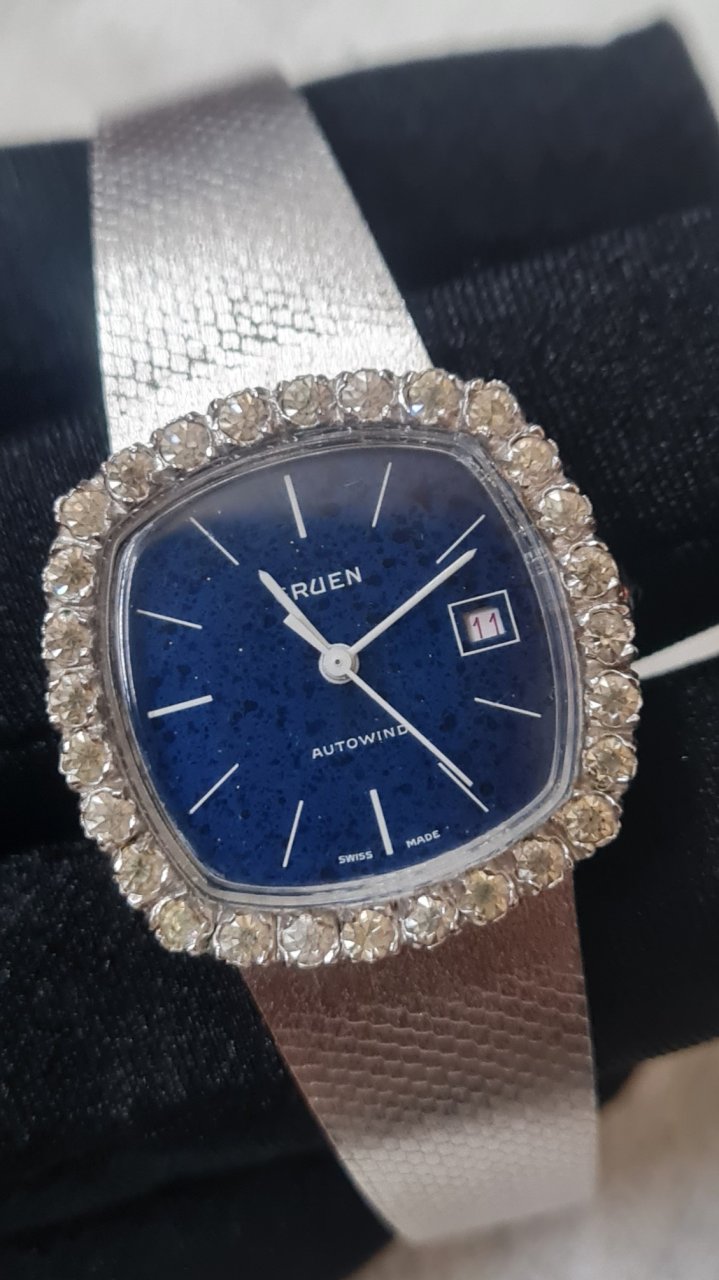 🌟 Đồng hồ nữ bọc vàng trắng hiệu Bruen mặt men xanh máy tự động niềng đính đá zin siêu siêu hiếm.