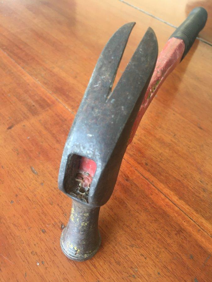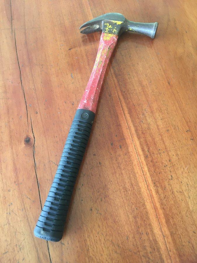 Bán 1 búa Yamaguchi nặng 640g, cán sợi thủy tinh bọc nhựa còn rất mới đẹp, búa dài 39cm, phần đóng 2,7cm. Đầu búa và phần nhổ đỉnh còn lành nguyên