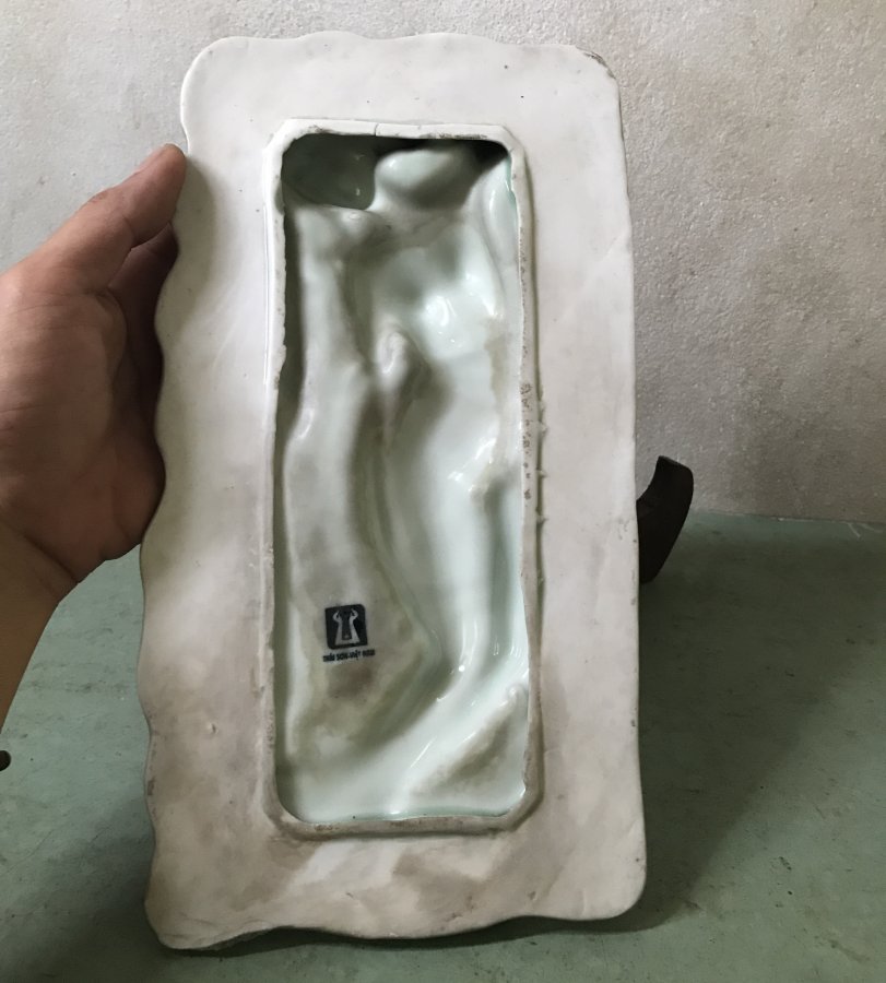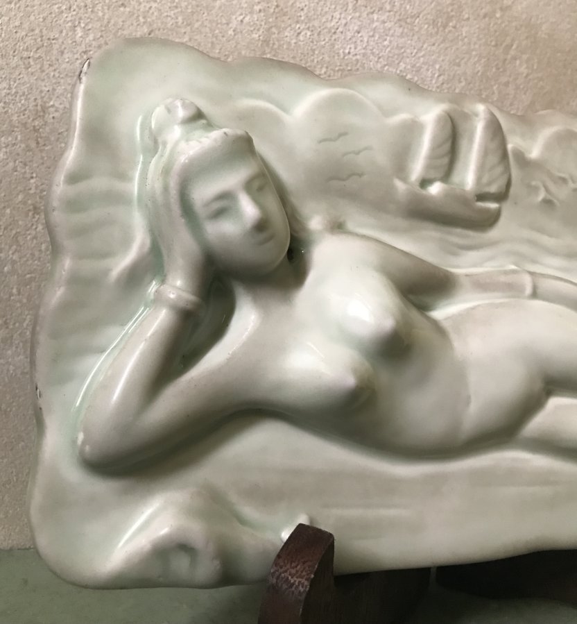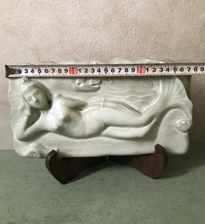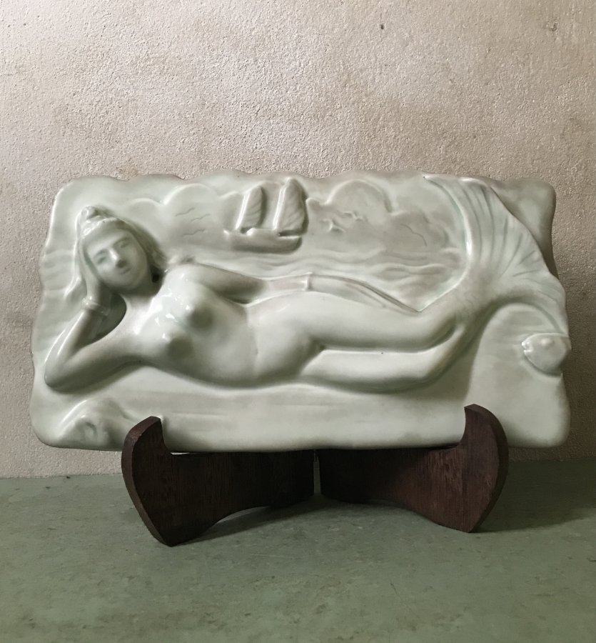 Bức phù điêu nàng tiên cá gốm sứ ,cũ xưa .Kt mini cao 15cm dài 29cm