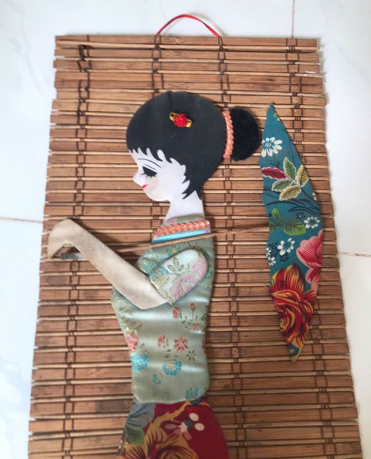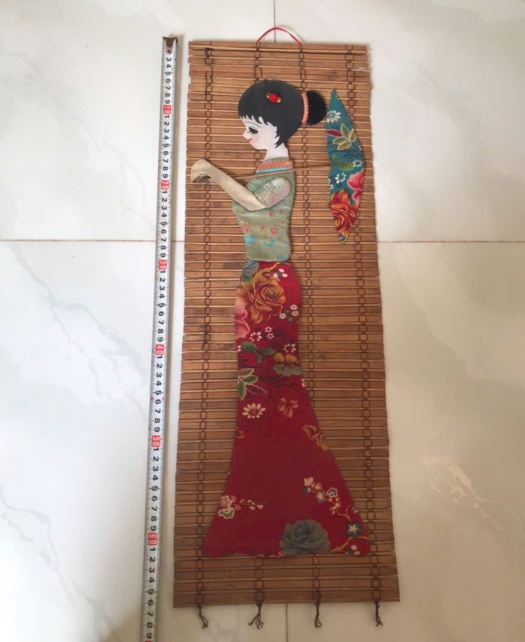 Bức tranh mành tre gấp vãi ,cũ xưa .Kt dài 65cm rộng 23cm